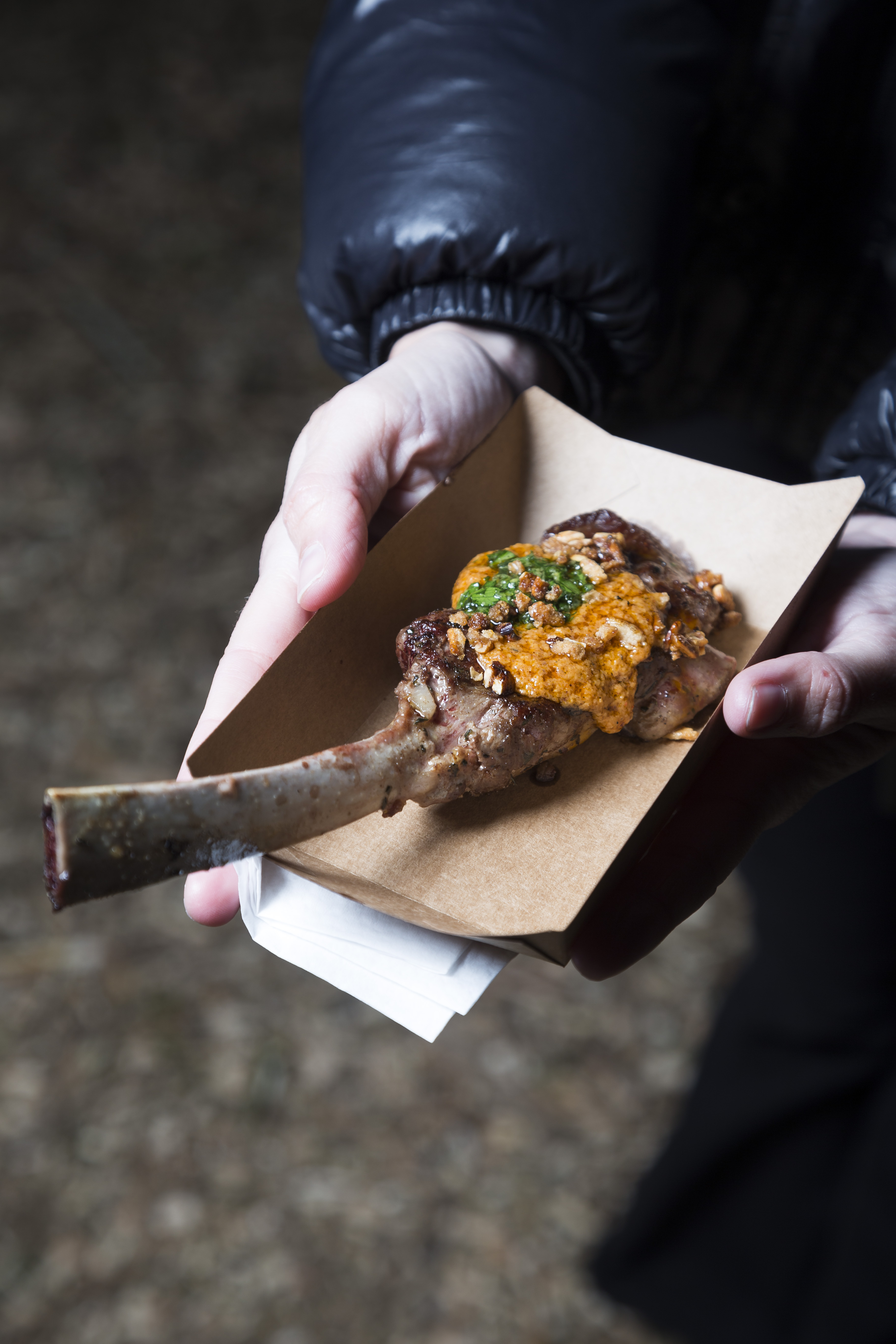 Con su simpatía característica Feli te recibe con una especie de chupetín gigante de cordero con hueso, para comer con la mano, te animes o no, con salsa de romesco, gremolata, terminado con una garrapiñada de rocoto. Agarrás el palito y te alistás para degustarlo bocado a bocado y sorprenderte con la fusión de sabores.