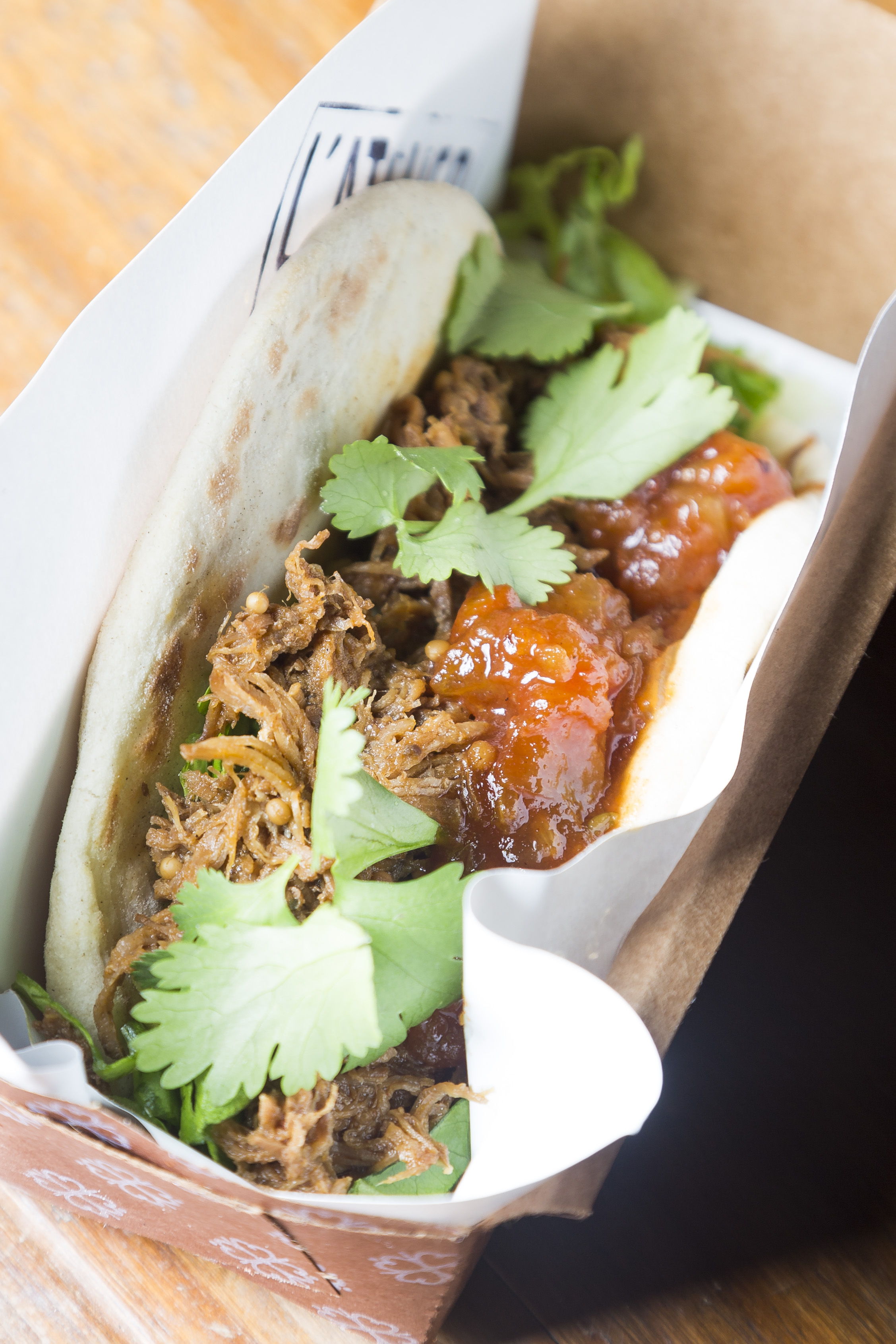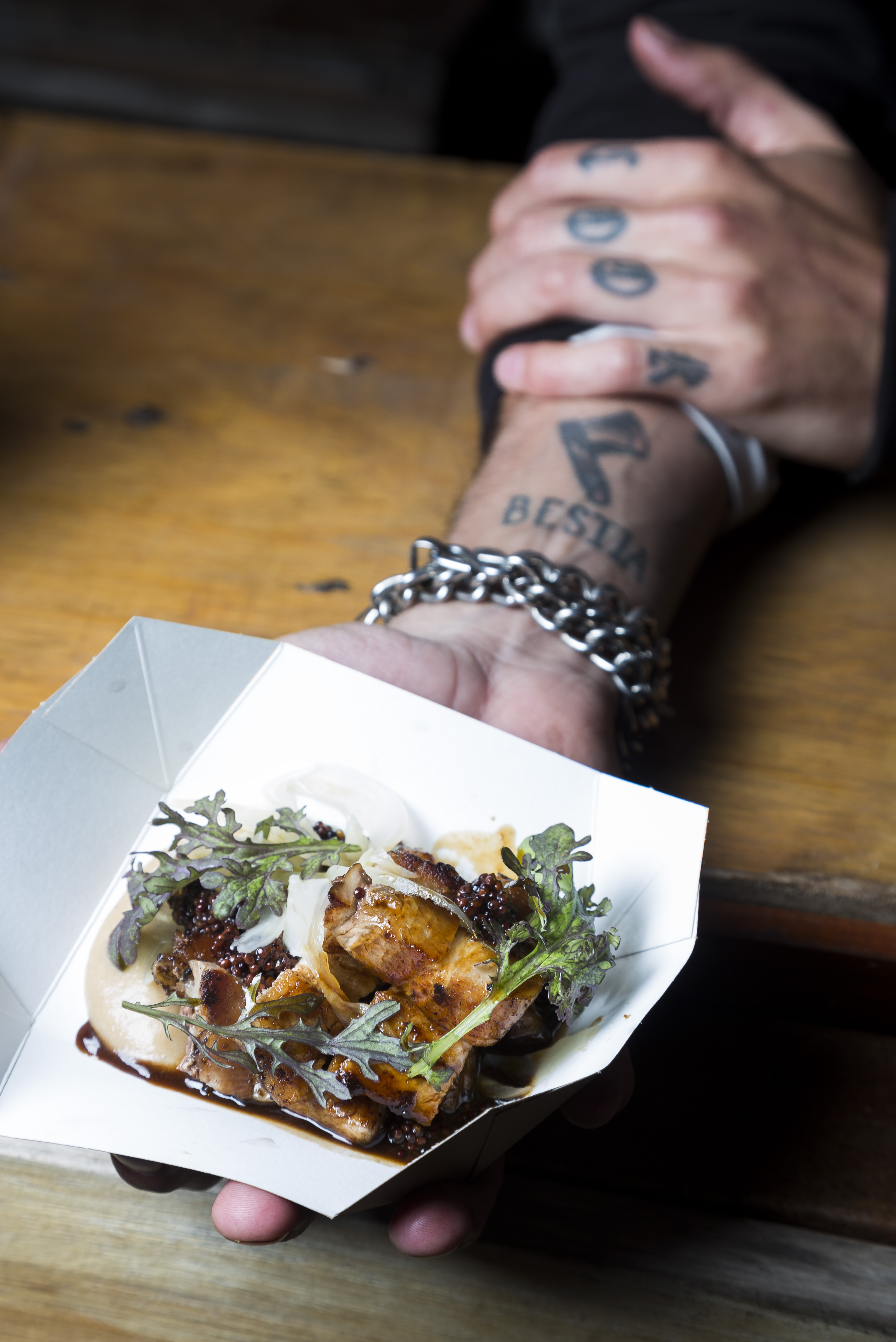 A este puesto te vas a acercar por el humo y la música, y una vez ahí, no vas a poder dejar de probar la panceta, que se vuelve protagonista total de la escena: braseada durante horas, con el jugo de la cocción reducido en un demiglace, más el puré de manzana y caramelo que corta el ahumado y le da un sabor entre dulce y ácido; el viaje termina cuando apreciás la frescura del hinojo encurtido y los pickes de mostaza; todo de una sola vez.