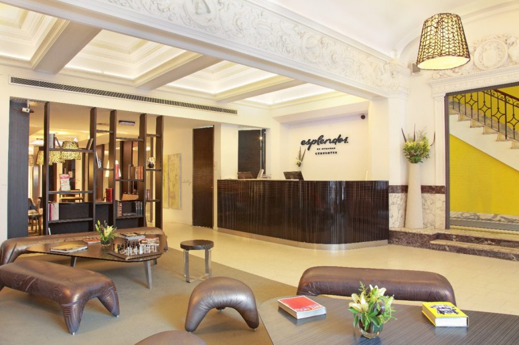 El Esplendor Cervantes ubicado justo al límite de la Ciudad Vieja, en el Barrio de Las Artes, tiene una historia para contar. Inaugurado en 1927 como Hotel Cervantes, vio pasar en sus muchos años de actividad a huéspedes ilustres de las letras y la cultura. Fue inspiración para Cortázar al escribir su relato La puerta condenada y a Bioy Casares al ambientar su cuento Un viaje o el mago inmortal. También dicen que Gardel se alojaba en el Cervantes y tenía su habitación favorita: la 104. El Cervantes era un teatro, una sala de lujo donde sucedían obras internacionales del teatro de la época. A la derecha de las puertas del teatro, una puerta más chiquita llevaba al hotel en los pisos de arriba. Con los años, la decadencia del paso del tiempo también llegó al hotel que por tiempo estuvo abandonado y luego fue una playa de estacionamiento.