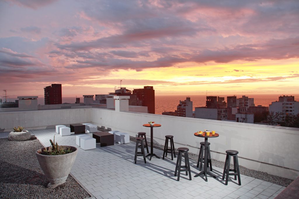 Atardecer en el canchero rooftop del hotel Esplendor Cervantes by Wyndham