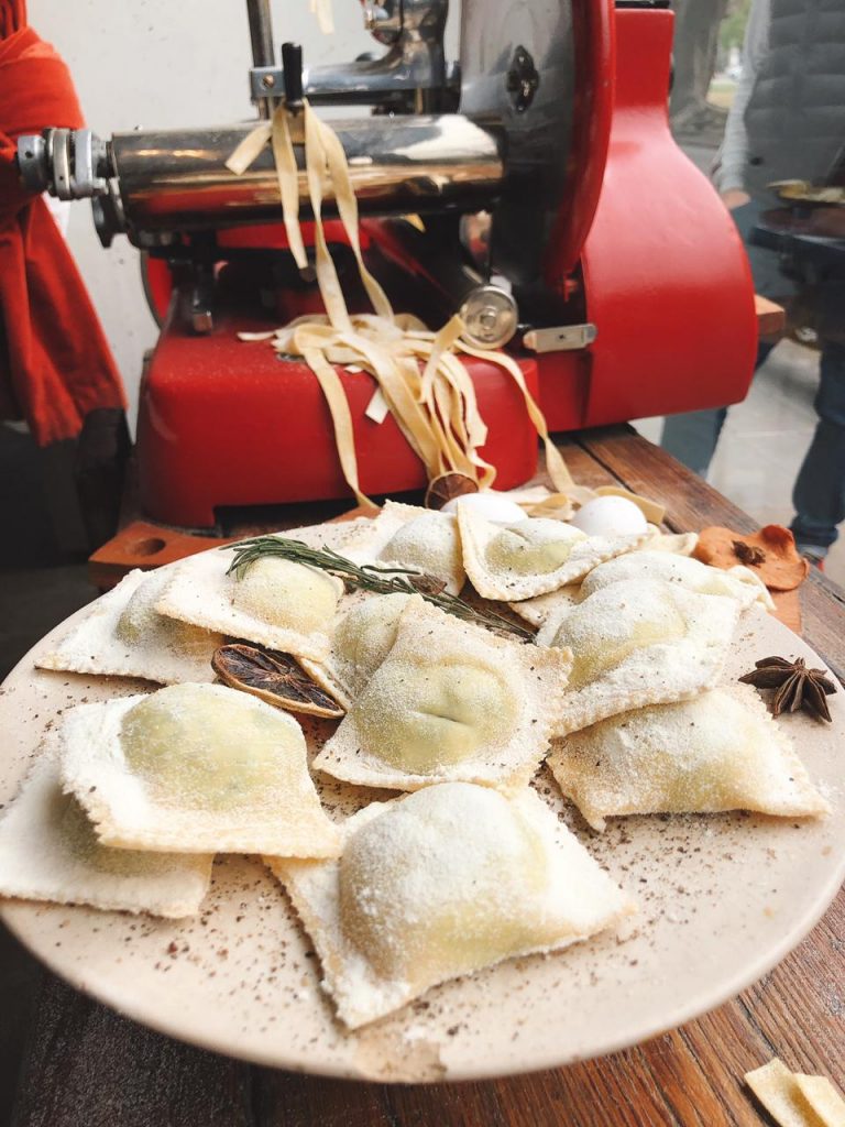 ¿Uno de sus secretos del éxito? Materia prima de calidad. Como las verduras frescas, sémola candeal y huevos de campo. Dentro de los clásicos, hay que mencionar los raviolones de espinaca y ricota y los Scarpinocc de berenjena asada, sofrito de morrones con quesos ahumando. Lucio también rescató algunas recetas de su madre genovesa, como los raviolones de la Mamma. No duden en probar los cappellacci de calabaza y los raviolones de cordero y hongos de pino. Al momento de nombrar una de sus propuestas más innovadoras, no podemos olvidarnos de los «Doppio», unos raviolones dobles rellenos de bondiola braseada en cerveza negra y el otro de batata, miel y peperoncino.