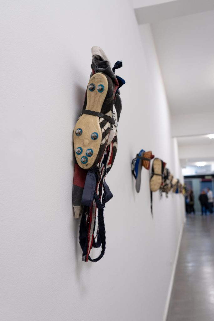 “Buscamos que estas obras se exhiban como si estuvieran en una especie de pasillo de club de barrio o camino a un vestuario”, explica el rosarino Herrera sobre cómo fue pensada la puesta en escena de “Temperatura perfecta”, la muestra que finalizó hace unos días en la cuál el artista a través de distintos objetos y prendas deportivas, reconvertidas en piezas artísticas y condensadas en una única forma, habla del erotismo masculino y del paso de la adolescencia a la adultez de un grupo de jóvenes santafesinos. Sus costumbres, sus juegos, su privacidad, sus historias y sus deseos, sirvieron de inspiración para este artista hijo de floricultores que llegó a exponer en 2011 en la Bienal de Estambul. “La muestra de Carlos (Herrera) fue craneada incluso antes de que se gestara el espacio”, reconoce Suranyi.