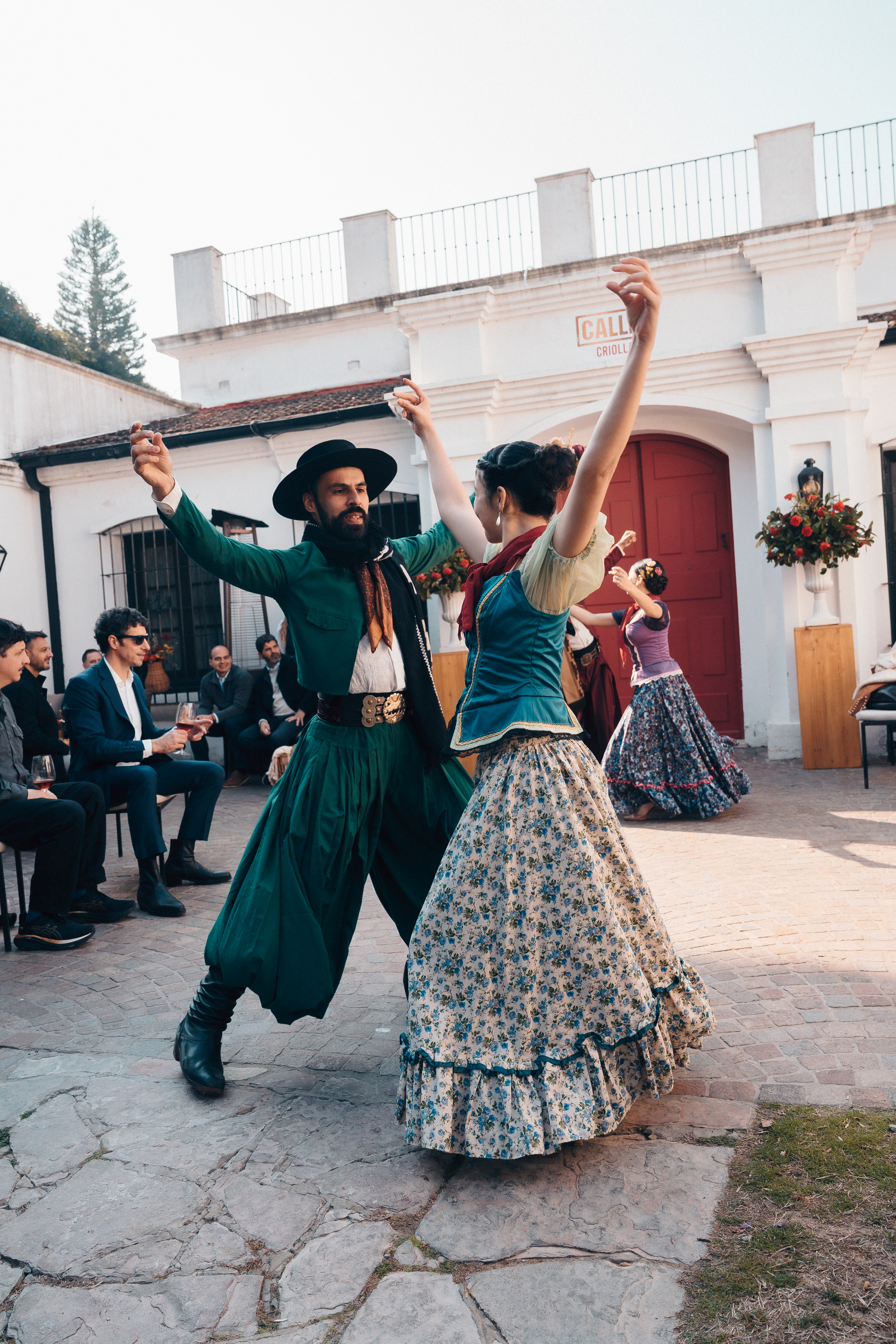 Y, para sumergirnos en el espíritu de época, el evento lanzamiento fue un túnel del tiempo a la Buenos Aires colonial, con la Quinta Anchorena de San Isidro como el entorno ideal. Ingresabas con una palabra clave a la pulpería secreta donde te servían una copa de Criolla clandestina (ya que, como cuenta el historiador Felipe Pingna, el único vino permitido en aquel momento era el que venía de Europa). Alrededor, circulaban personajes de la época, mesas con delicias criollas clásicas – desde humitas, empanadas y guiso de lentejas hasta pastelitos de membrillo – un show de Folklore, mini obras de teatro y una charla del historiador argentino que fue convocado por Bodegas Callia para narrarnos la historia y anécdotas de “La Criolla”.