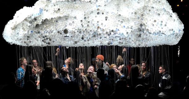 Si los lunares que se repartieron en Kusama con las entradas nos hicieron acordar a los souvenirs de los cumpleaños infantiles, tirar de las cadenas de CLOUD nos llevará sin escalas a la escena de la piñata (mejorada, sin los golpes de chupetines en la cabeza). Esta escultura interactiva de casi seis metros, creada por dos artistas canadienses está formada por 6.000 lamparitas que se pueden prender y apagar. Estuvo dando vueltas por Rusia y Canadá, donde los transeúntes se organizaban por iniciativa propia para apagarla en su totalidad o creerse Zeus y simular relámpagos. Una escena parecida a la de los que con el afán de cambiar su color, se juntan a gritarle a Volúmen, el “semáforo” medidor de contaminación sonora creado por Sergio Avello y pieza fundamental de la fachada del MALBA desde 2007.
