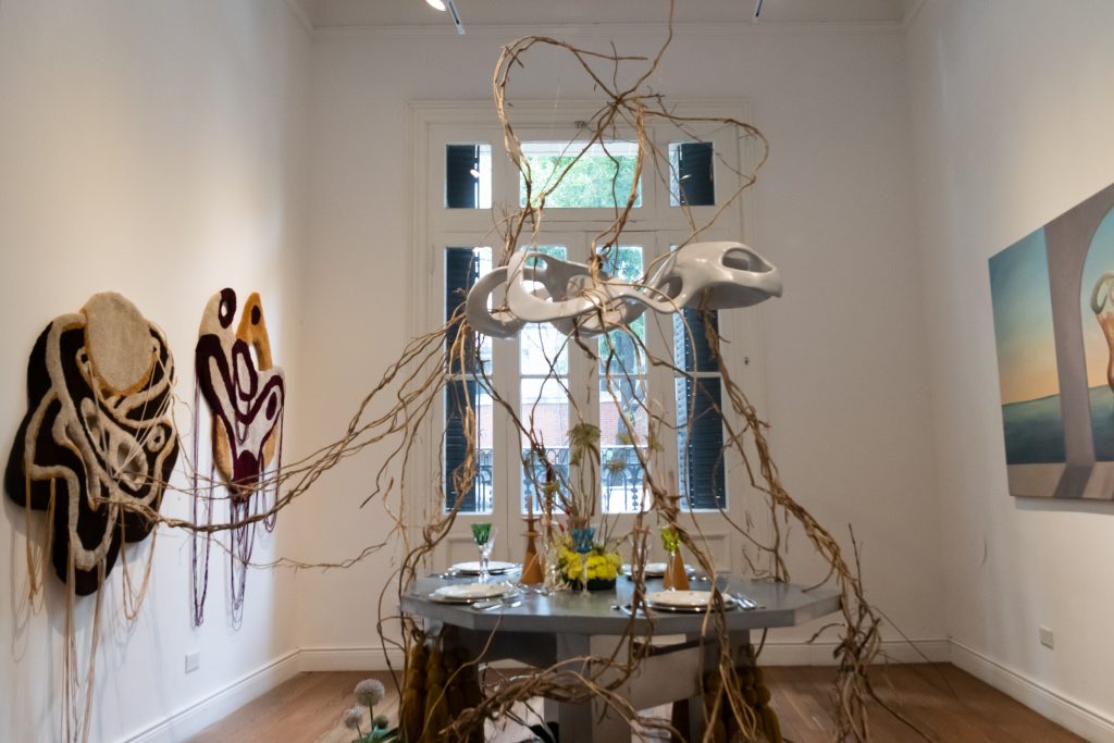 «Los visitantes siempre pueden charlar con alguien ya sea el artista, los curadores o con nosotros. Y pasa que muchas veces mientras se dan esas conversaciones hay gente pintando una escenografía para alguna fiesta de Javi, o alguien cocinando algo en la cocina o llega un amigo y sale un cafecito…»