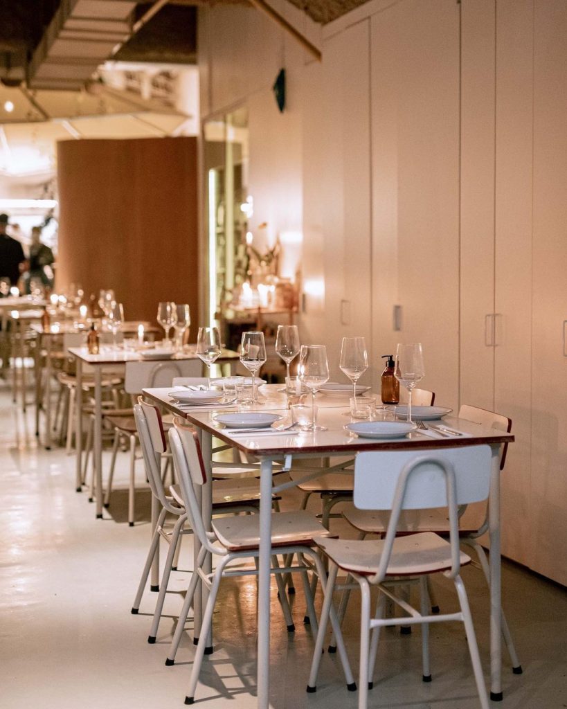 Moviéndonos hacia la zona de Colegiales, nos encontramos con un local que, al entrar, se puede apreciar la enorme cava de vinos con etiquetas coloridas y llamativas. Tintos, blancos, naranjos, rosados son algunos de los que resplandecen detrás de la puerta de vidrio. La cocina a la vista, un techo de tela amarillo y las mesas y asientos de colegio primario, terminan de completar la onda relajada de esta propuesta que en 2021 año fue elegido por los 50 best Latin America, como el mejor restaurante emergente del continente.