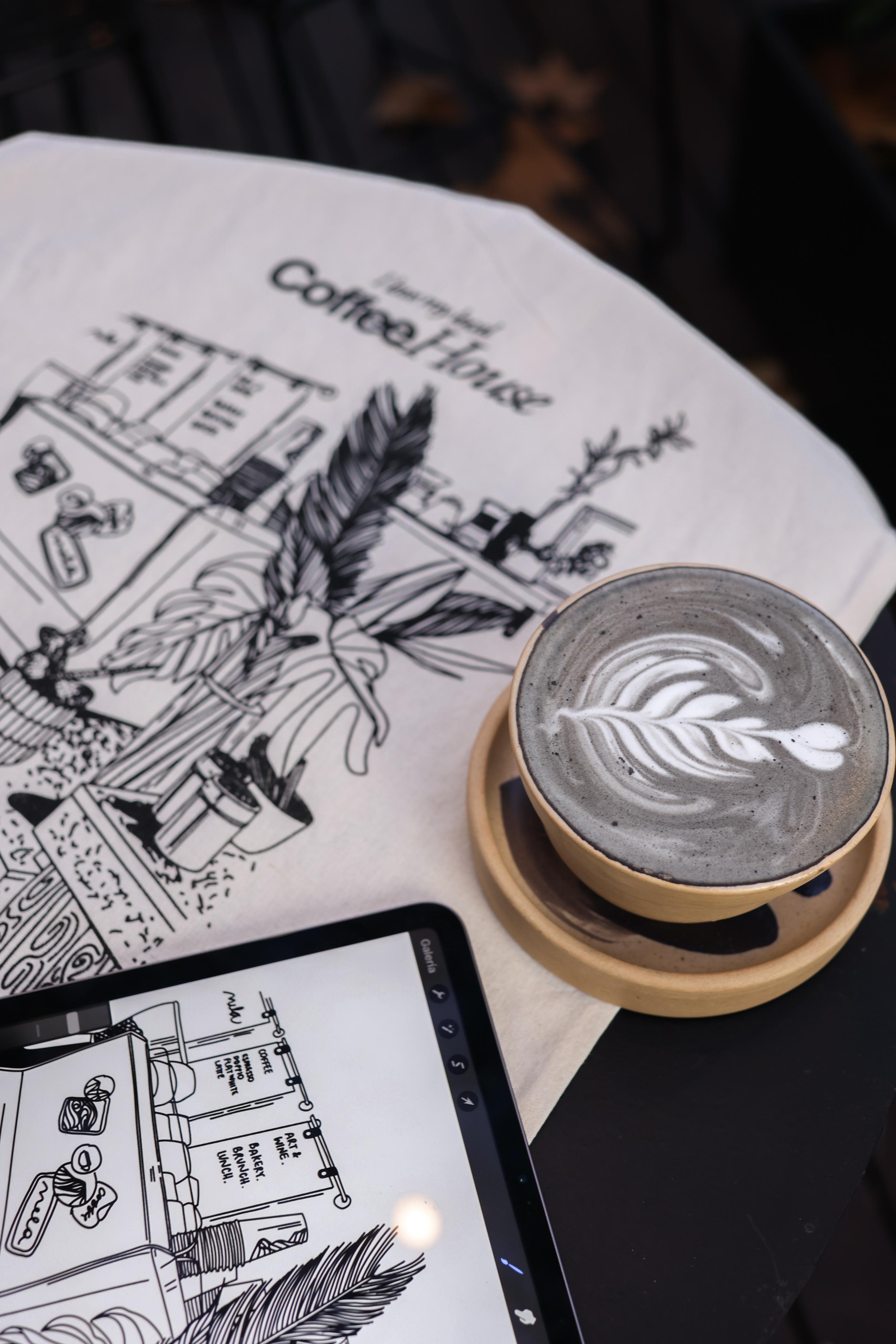 En una cafetería creada por una artista – donde ningún detalle está librado al azar y hasta las servilletas tienen sus ilustraciones – era de esperar encontrarse con vueltas creativas y una presentación bien atractiva de sus cafés. Nela tiene una historia familiar relacionada con la pastelería, y , a su vez, se dedica al diseño y la ilustración. “Acá quise combinar arte, diseño y gastronomía, y hacerlo con mi impronta y estética”, le cuenta a MALEVA. Sus cuadros, indumentaria, stickers, papelería y láminas decoran cada rincón del espacio bien amplio que tiene en Palermo, incluso su fachada.