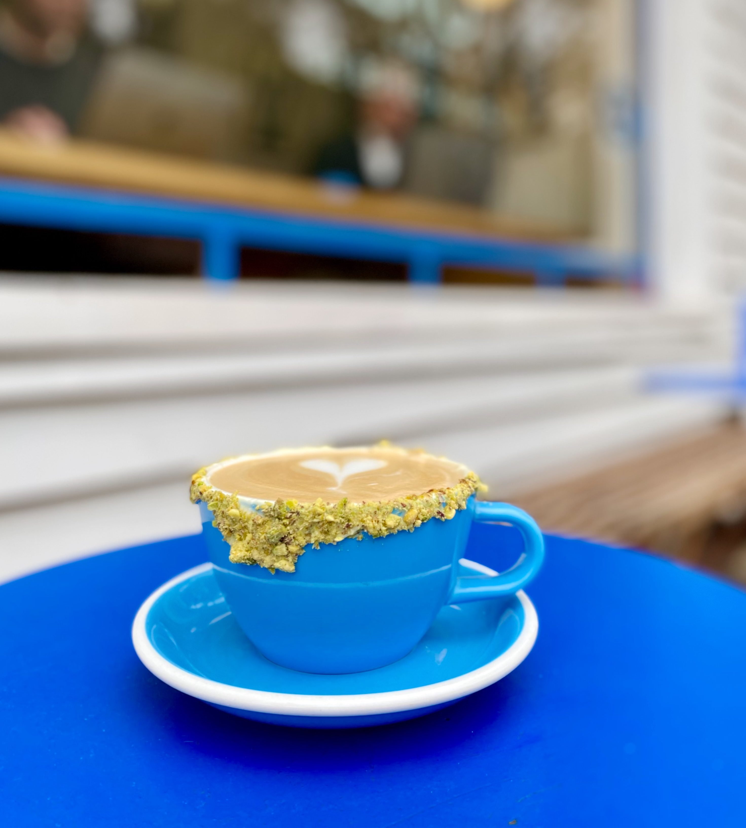 Su último lanzamiento bomba es el Mocca de Chocolate Blanco y Pistachos. Lo empiezan con toda: mojan el borde del tazón con chocolate blanco de cobertura y lo pasan por pedacitos de pistacho fresco. Adentro, un latte que, en cada trago, viene acompañado de la mezcla cremosa y crocante del decorado. Otra opción interesante es su Golden Capu que tiene mucha presencia en boca de su blend de especias y al que ellos le agregan un shot de café.