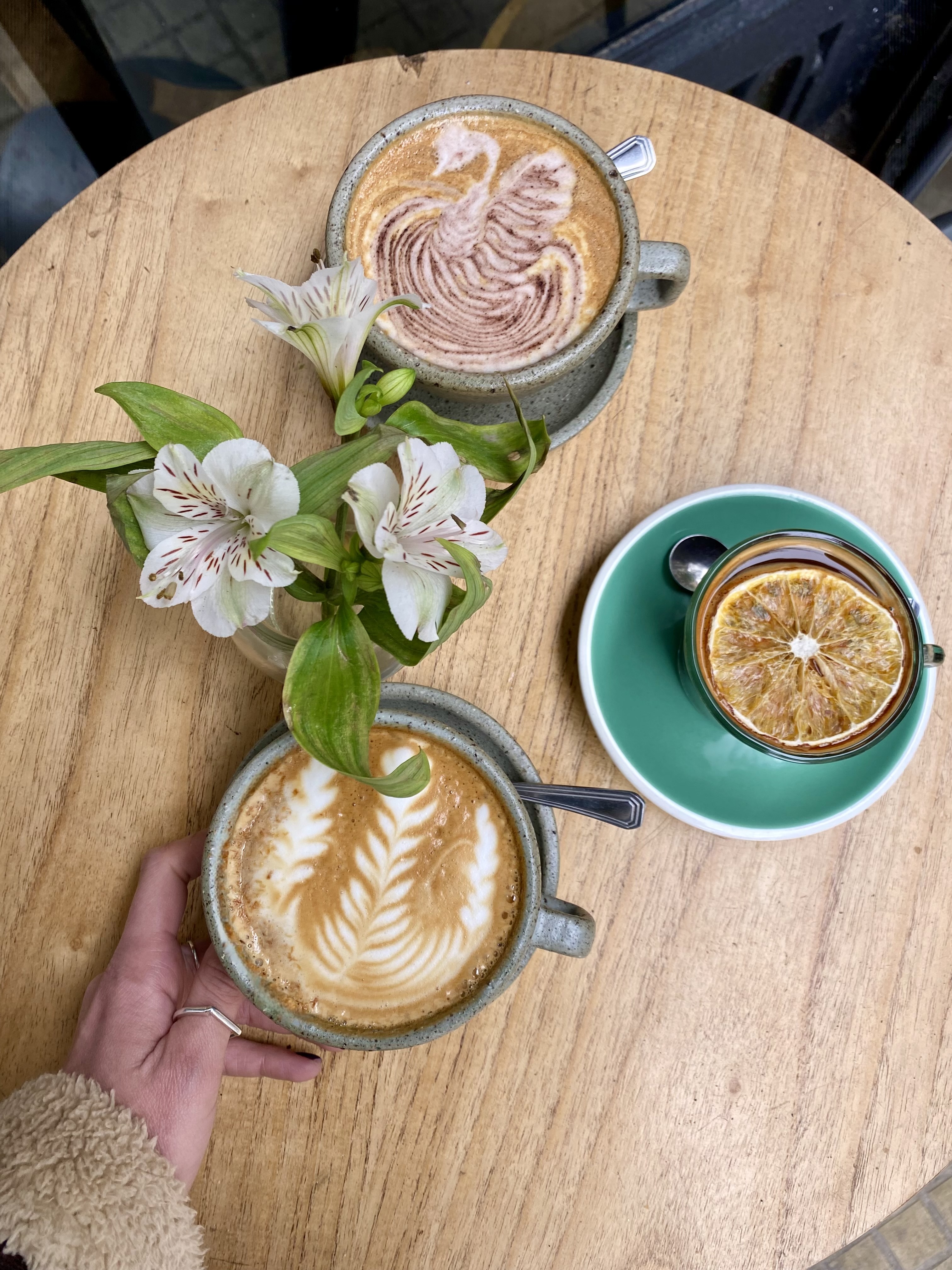 Además de los espressos y filtrados, tienen un apartado en su carta que se renueva dos veces por año: los especiales. Este invierno repitieron dos recetas que lograron trascender temporadas pasadas; el “Cappu Avellanas”, dulce e infalible, y el osado “Red Hot Chili Cappu”, que preparan con una miel de jalapeños casera, agregándole un picor interesante al amargo del café y el dulce del cacao. A los nuevos los lidera el “Cococcino”, que viene con un dulce de coco especiado, anís y sal marina, y una deco que le agrega un final crocante a la experiencia. Sin leche, lanzaron el “Fruta Prohibida», con fermento de manzana y manzanilla.