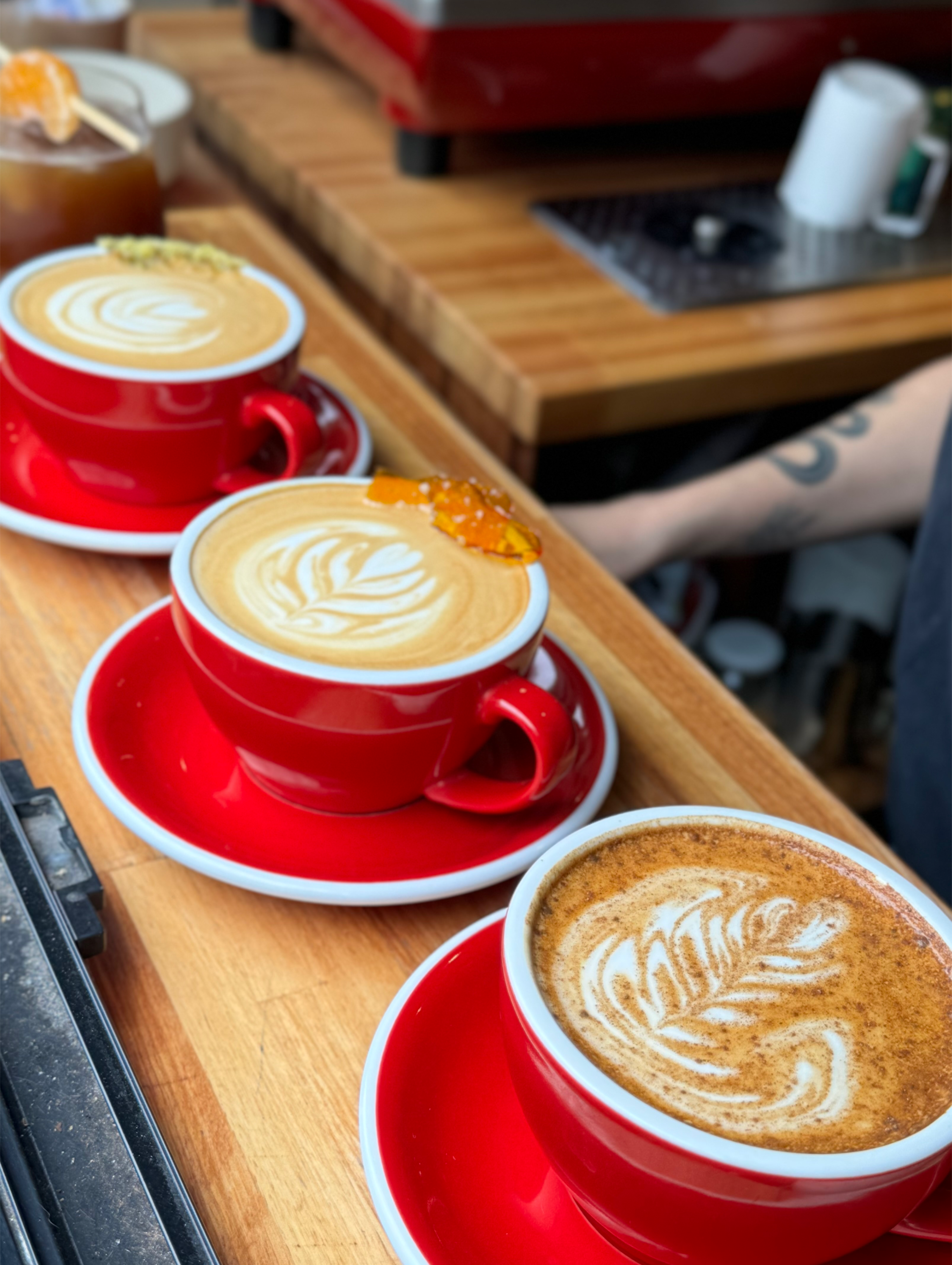 Apple Pie Latte, Red Hot Chili Cappu, Surfer rosa / Es tendencia: los cafés especiales de invierno copan Buenos Aires / Seis locales donde descubrirlos. Por Lenchu Rodríguez Traverso para MALEVA.