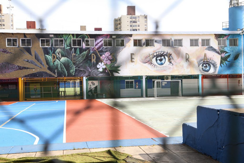 3) Los dos grandes murales del Polideportivo Colegiales de Mariala Ajras y Joaquín Torres Zavaleta: ese tipo de arte que no ves hasta que lo descubrís y después no podés dejar de mirar / Freire al 120