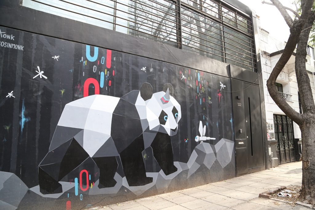 5) El mural de Andrés Agosin Monk en la calle Charlone: un «pandicornio» diseñado a pedido de unas niñas / Charlone entre Newbery y Maure