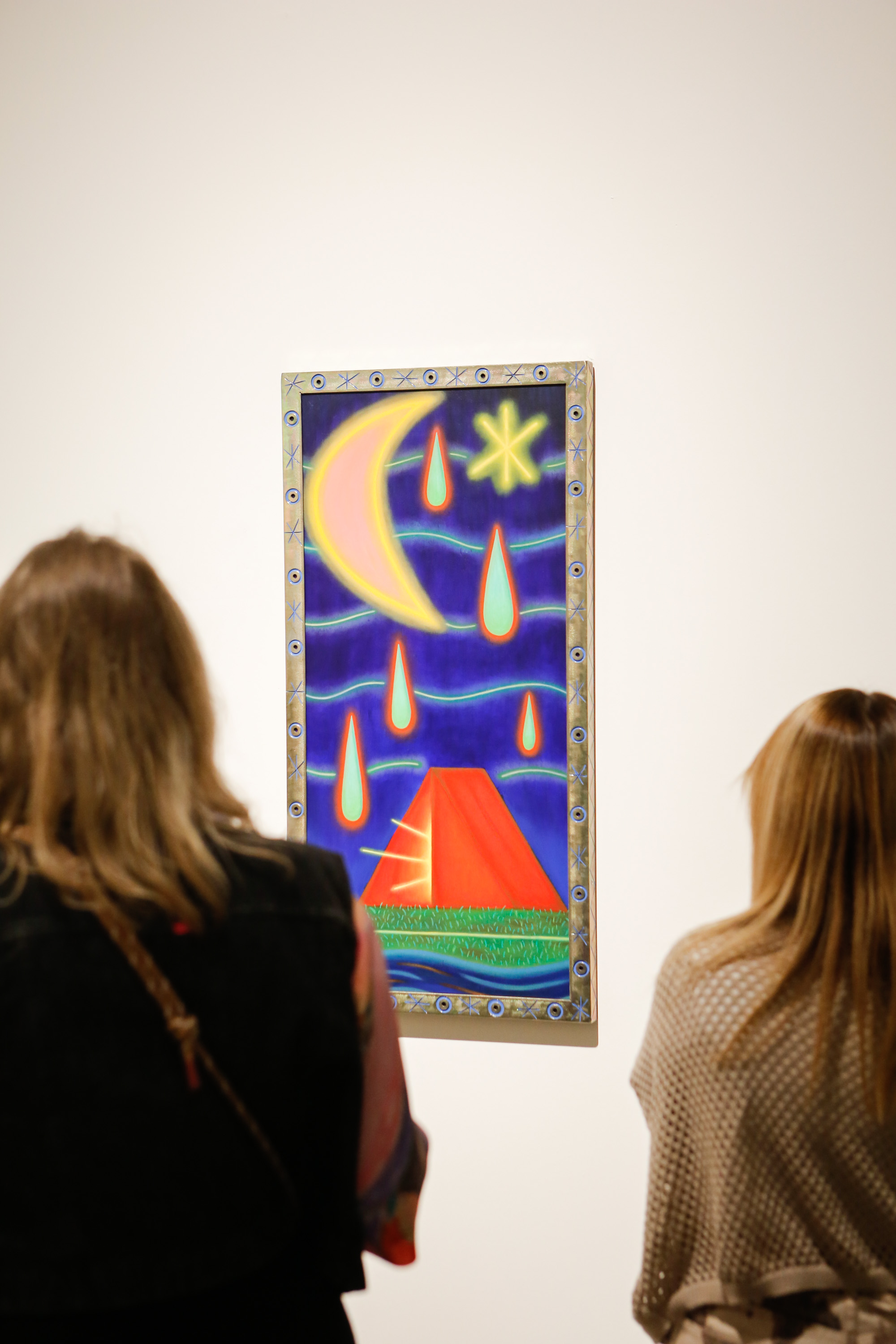 Hay varios recorridos posibles en esta exposición que deja al espectador elegir por dónde ir. En el camino se intercalan no solo obras de ambos artistas, sino también textos de cada uno. Xul solía escribir las visiones a las que accedía en meditaciones para vincularse con el mundo superior. “A partir de 1935, las transcribe a modo de diario. Cuenta ese viaje que va teniendo, escalón por escalón, atravesando el espacio místico en el que él se va desmaterializando hasta volver a la tierra. Los textos están reunidos en los San Signos”, continuó la curadora.