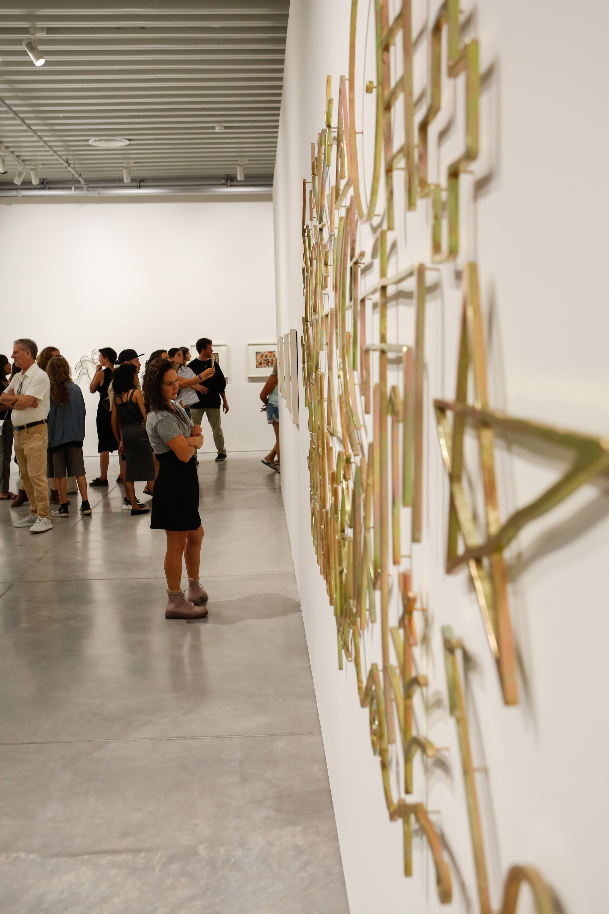 El recorrido empieza con un tendido laberíntico hecho de textiles negros con gotas platedas de cerámica enhebradas, y termina con una serpiente en el agua que aparece y desaparece. Todo aquí avista el ojo, despierta la curiosidad, conectándonos con una belleza diferente, que brilla, y una suerte de magia única que ocurre cuando el arte se encuentra con la naturaleza.