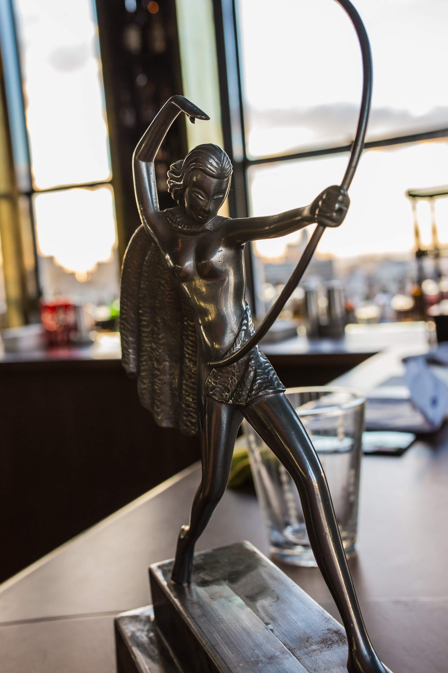 “Al ser un edificio Art Déco dijimos: ‘vayamos por ahí y potenciemos toda esa decoración’. El Art Deco es antes que nada líneas rectas, hay una pulcritud en todo. Por eso, la gama de colores, la elección de materiales, las formas de inmobiliario, los cuidados en la tipografía, todo congenia para que se respete eso”. En ese sentido, hasta los más mínimos detalles del espacio, desde las luminarias y las lamparas hasta los manijones de las puertas y las letras del menú parecen rendir homenaje al movimiento de diseño más influyente de la primera mitad del siglo XX.