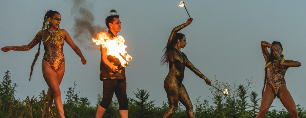 El primer momento épico de la jornada no tardó en llegar, cuando un grupo de performers que parecían ser una tribu misteriosa que vivía en esta especie de selva, desplegaron sus bailes con fuego y bengalas de colores. Al mismo tiempo, el sol estaba cada vez más cerca de caer, y del otro lado de la playa, podías ir a esperar el atardecer, mientras todo se volvía cada vez más naranja. Algunos se sentaban a meditar, otros a comer tipo picnic alguna de las delicias de street food que se ofrecían: panchos gourmet (como el Chilly, con salchicha picante y ensalada thai), hamburguesas, sandwiches de pulled pork, falafels, ensaladas, y más.