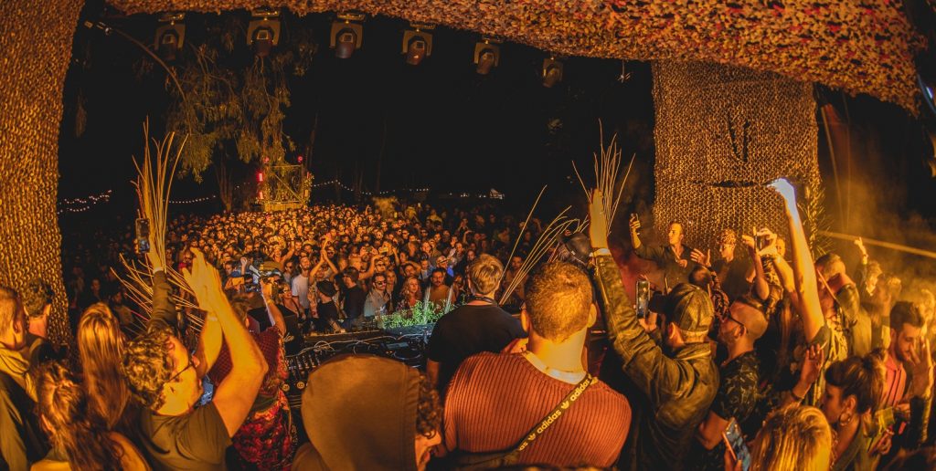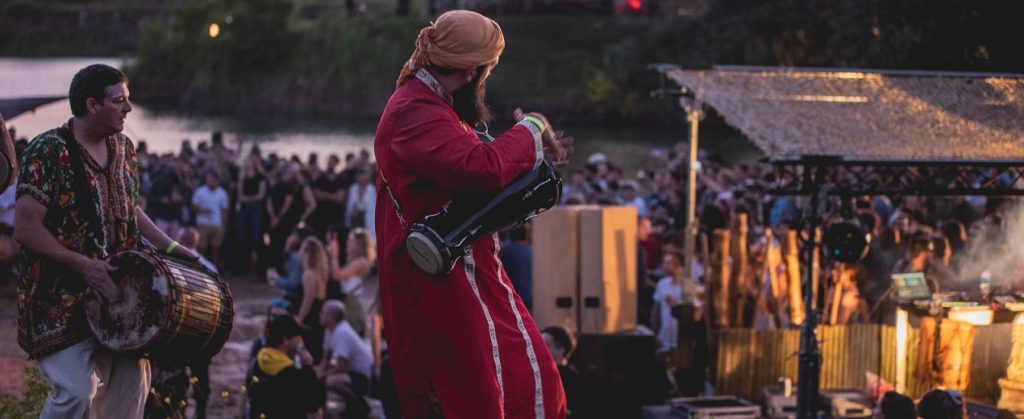 La gente, a esa altura, ya metía los pies en la laguna. Los más osados hacían la plancha, al ritmo de una música electrónica orgánica que empezaban a hacer sonar las Dj’s Belu Clavero y Kaleema, una artista que toca con instrumentos de viento y canta al mismo tiempo en su live set. Esto pasaba en el Arena Stage, un escenario de cañas, con un buda gigante sentado, que invitaba a entrar en esa conexión física y espiritual con los sonidos. De a poco todos se acercaron a bailar. Chicas con glitter, otros con looks playeros, y todos con una energía veraniega, sumergidos en ese oasis musical que siguió con Uji, otro Dj con un live show con tambores y flautas, para dar paso al Dj Iglesias.