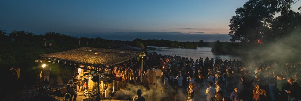 Todo empezó con un grupo de amigos: Dom, Nim, Román y Rafa, estaban aburridos de ir siempre a las mismas fiestas, y conocían mucho de lo que pasaba en eventos electrónicos internacionales como los de Ibiza, Inglaterra y México; por eso una noche improvisaron una fiesta en un jardín de una casa de Belgrano, donde invitaron a un artista internacional en pleno auge a hacer un live show. Esa fue la primera semilla que creció hasta convertirse en The Garden Events, la productora con la que desde 2012 generan eventos de música electrónica con artistas innovadores en lugares de la ciudad que muy poca gente conoce, rodeados de naturaleza y agua. Han hecho varias fiestas con el formato “open air” y “pool parties”, y en esta ocasión, MALEVA asistió a la “Garden Experience” de noviembre; una fiesta producida en un lugar encantado en Pilar, donde hay una laguna gigantesca, rodeada de árboles, con una playa en la que puede verse el sol caer y transformar todo en una escena caribeña, aunque solo te hayas alejado unos 14 kilómetros del centro del barrio.