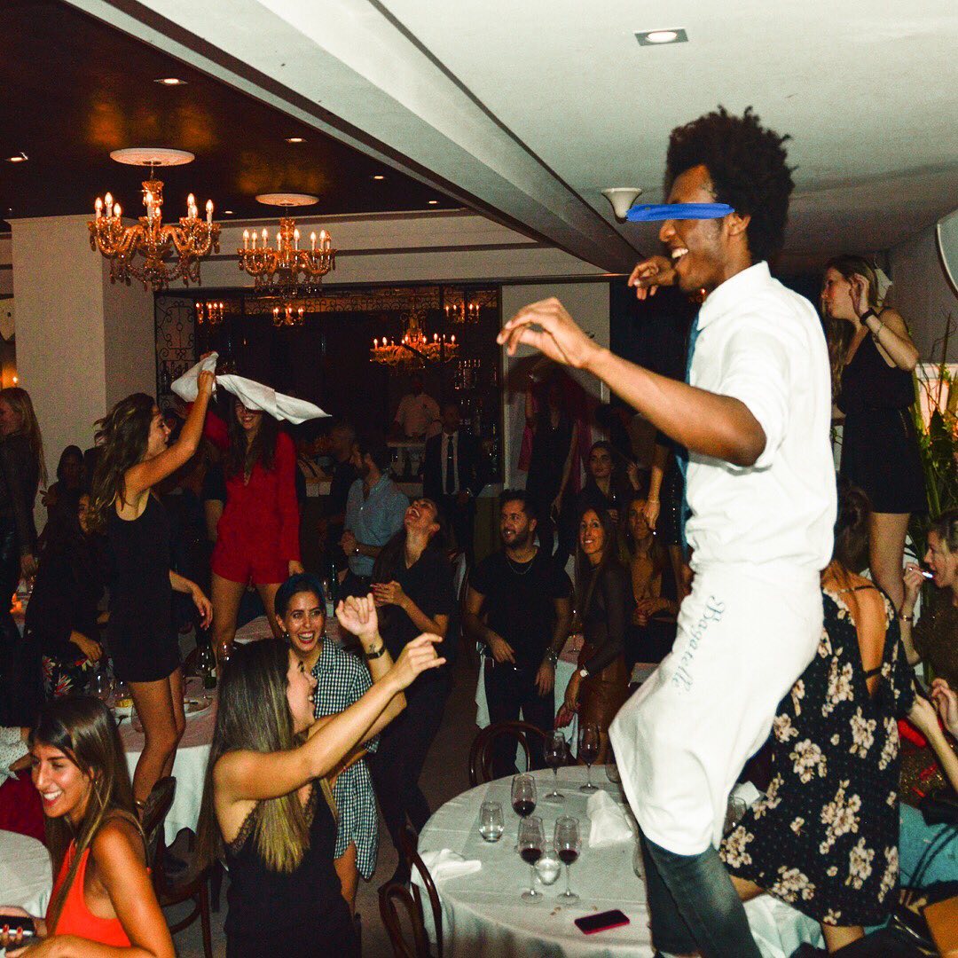 Pero no es un baile modesto y tímido, para nada. La gente y el personal del lugar se para arriba de las mesas mientras revolean servilletas por el aire. Li-te-ral. Una verdadera fiesta impulsada por la música que la rompe toda, una especie de mezcla entre electrónica, house y rock – con algún que otro infiltrado reggaetonero – que curan sus Djs. Por ahora, todo bien. Pero la cosa se termina de desvirtuar cuando los más valientes empiezan a pedir champagnes o, aún más fuerte, una torre de shots de licor de café que viene con una bengala encima y que, como si fuese poco, te la lleva un mozo sobre los hombros del otro bailando mientras caminan. Sí, todo eso en un lugar que horas antes era un restaurante súper elegante. Ya para las 2 de la mañana había gente disfrazada y yo estába con un sombrero tipo mariachi en la cabeza. Por si no es tan obvio, lo aclaro: gran coordenada para conocer con tu grupo de amigos.