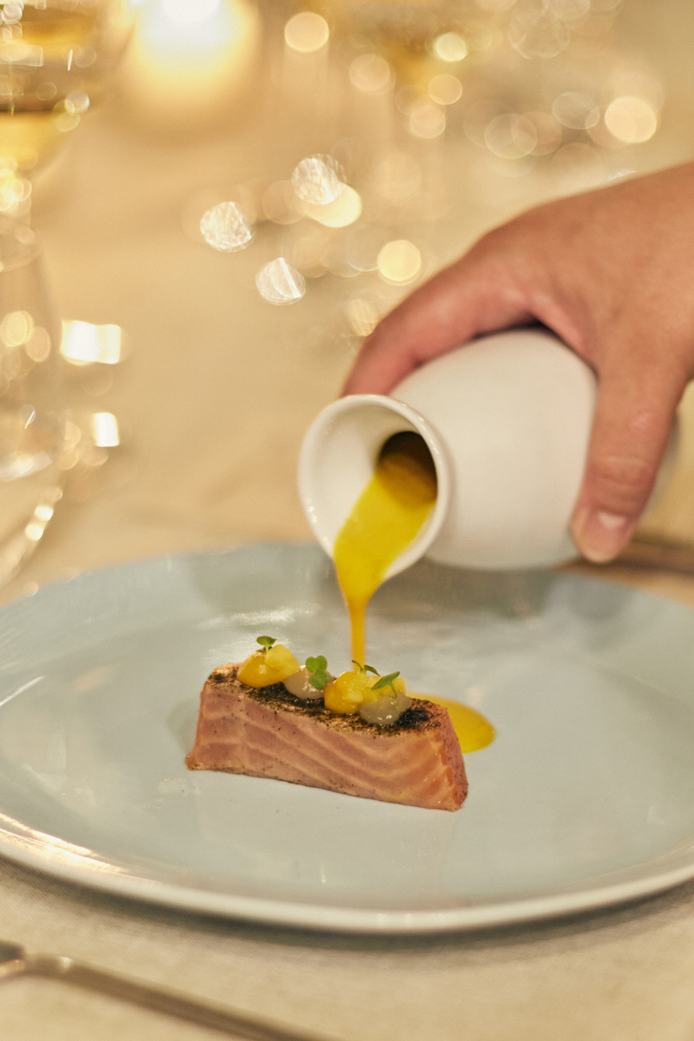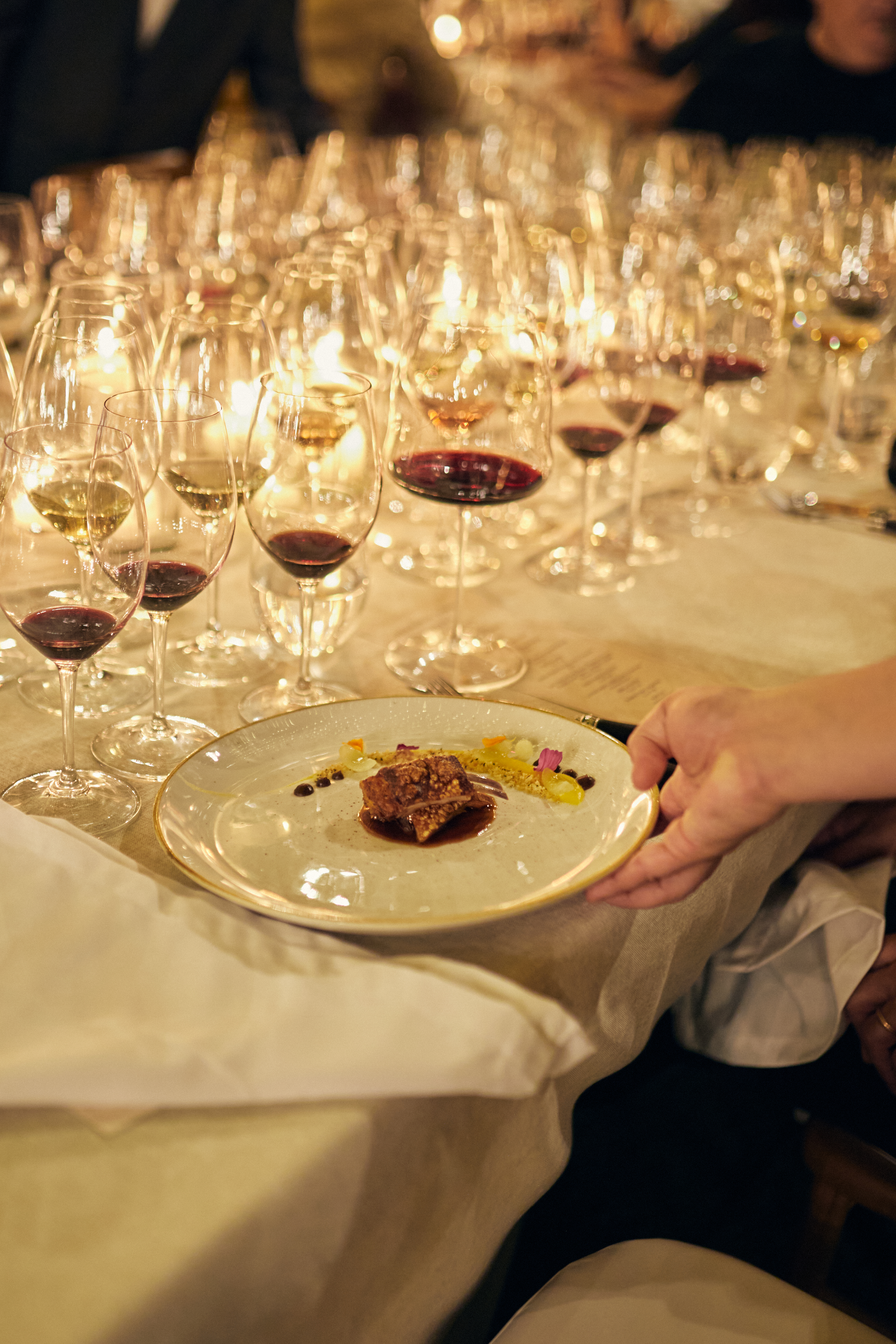 Hasta ahora solo hablé del sábado en Estancia Uspallata, pero el evento que me llevó a Mendoza, en realidad, fue la espectacular cena del viernes en Casa Vigil. Para dar cierre a su semana compartida, los dos restaurantes combinaron equipos, sumaron al de Elena y prepararon un menú de 13 pasos para cincuenta invitados, llevándonos lentamente en un viaje sensorial por Mendoza, Buenos Aires y Barcelona. Todo se fue desarrollando bajo una cortina de luces que nos envolvía en ese aura estelar y nos susurraba al oído: “disfrutá, que no vas a vivir una noche igual”.
