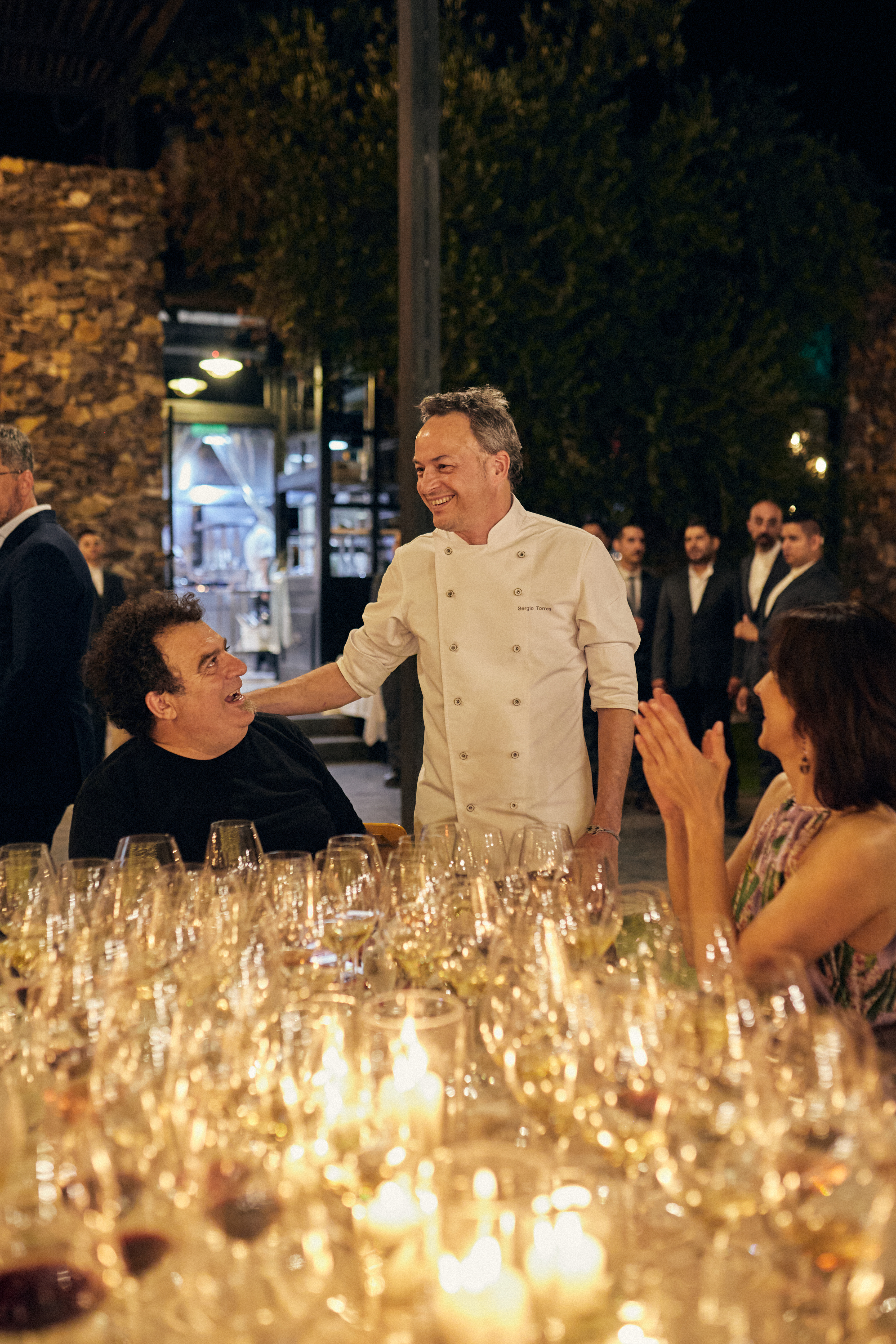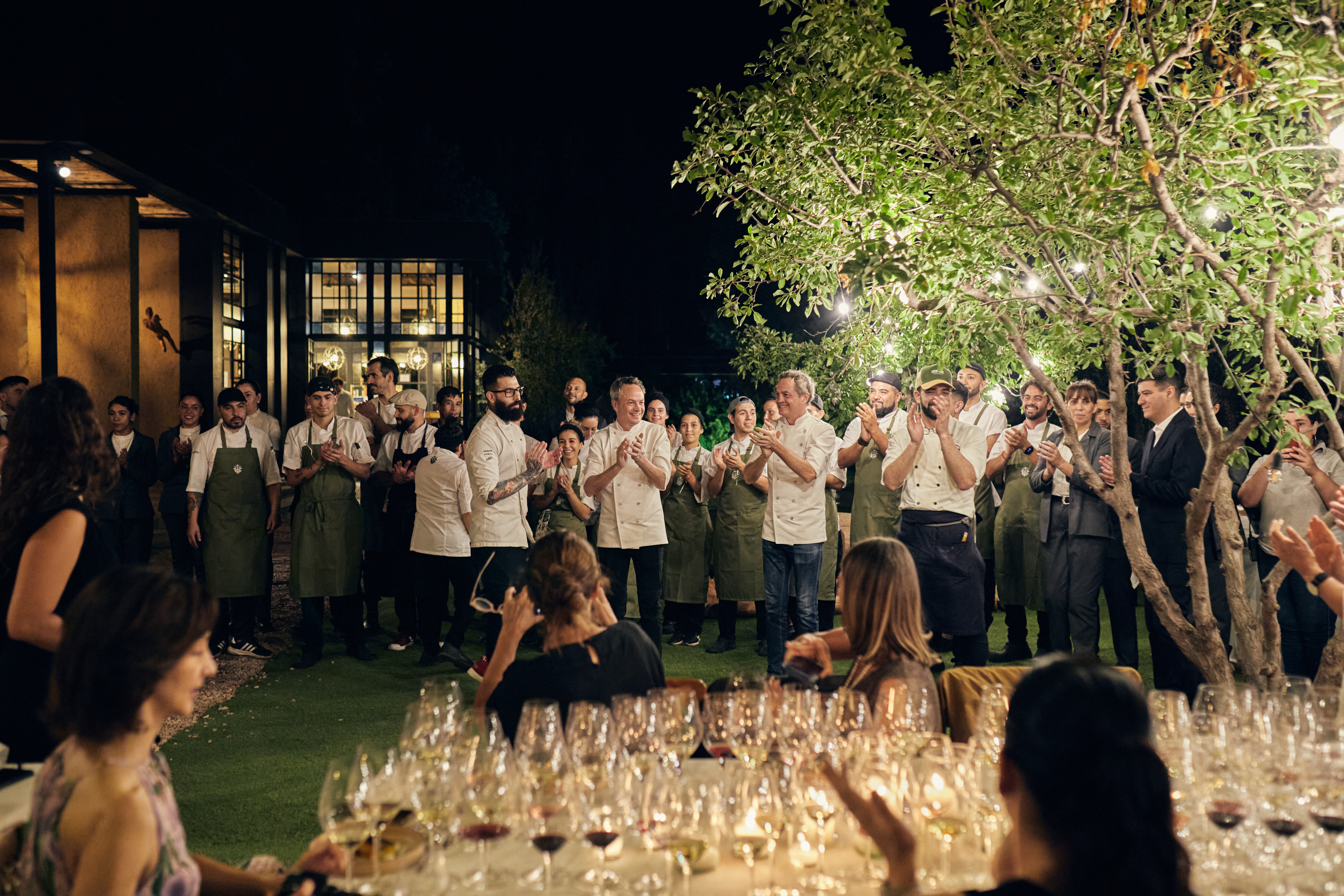 Miraba alrededor y sacaba fotos mentales del momento. Mientras le llenaba la copa de vino a Sergio – el hermano mayor de los Torres por solo 5 minutos – veía cómo Ale Vigil, Javier (el otro gemelo), sus equipos, amigos y familia cantaban Soda Estéreo a todo volumen. El paisaje soñado y lluvioso de Estancia Uspallata, con sus montañas en esa paleta terrosa más bien norteña y el viñedo sobre la ladera terminaban de darle un carácter onírico. Recuerdo cerrar los ojos con fuerza para intentar grabar el álbum de emociones de las últimas 48 horas. Se estaba terminando ese viaje express pero que condensó una de las experiencias más espectaculares de mi memoria: dos días en Mendoza, compartiendo y degustando las creaciones de 3 gigantes de la gastronomía mundial.
