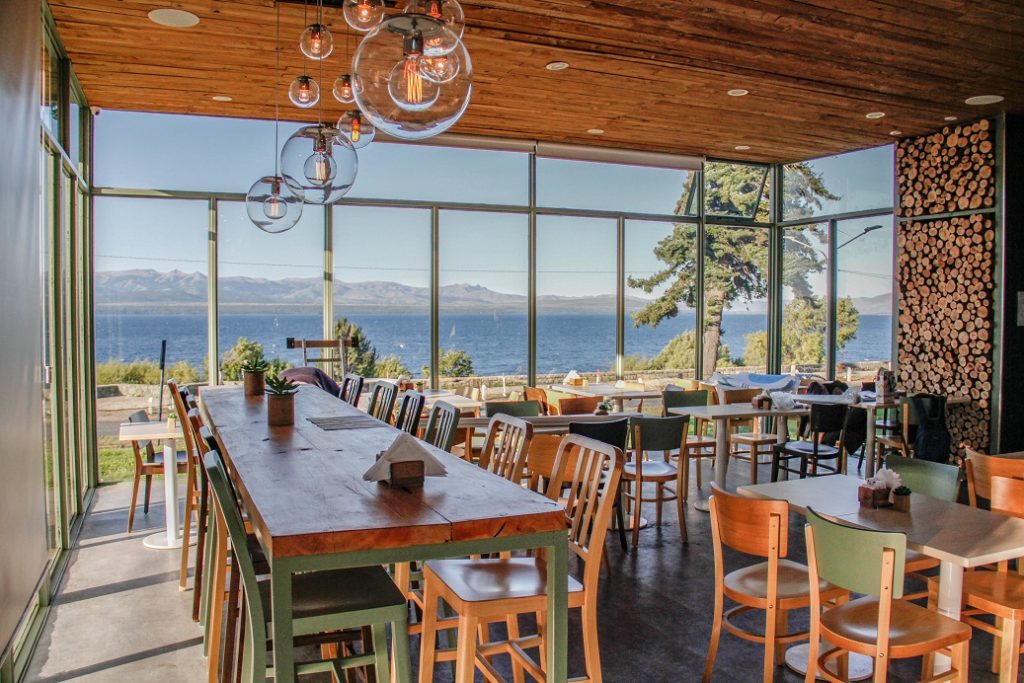 Gracias a su ubicación privilegiada frente al lago Nahuel Huapi, Lua ofrece un ambiente cálido con un “toque” femenino. El jardín es uno de los lugares más codiciados por los clientes, desde donde se pueden apreciar los imponentes atardeceres de Bariloche. Conectado con un hotel (ambos están dentro del mismo edificio), la construcción llama la atención debido a sus techos altos y su madera cálida. Además, su chimenea le otorga la magia de poder llegar en un día frío y prender el fuego. “Es como una pequeña gran casa, un lugar de encuentro con amigos”, cuenta Carolina Calcagno, una de las dueñas.