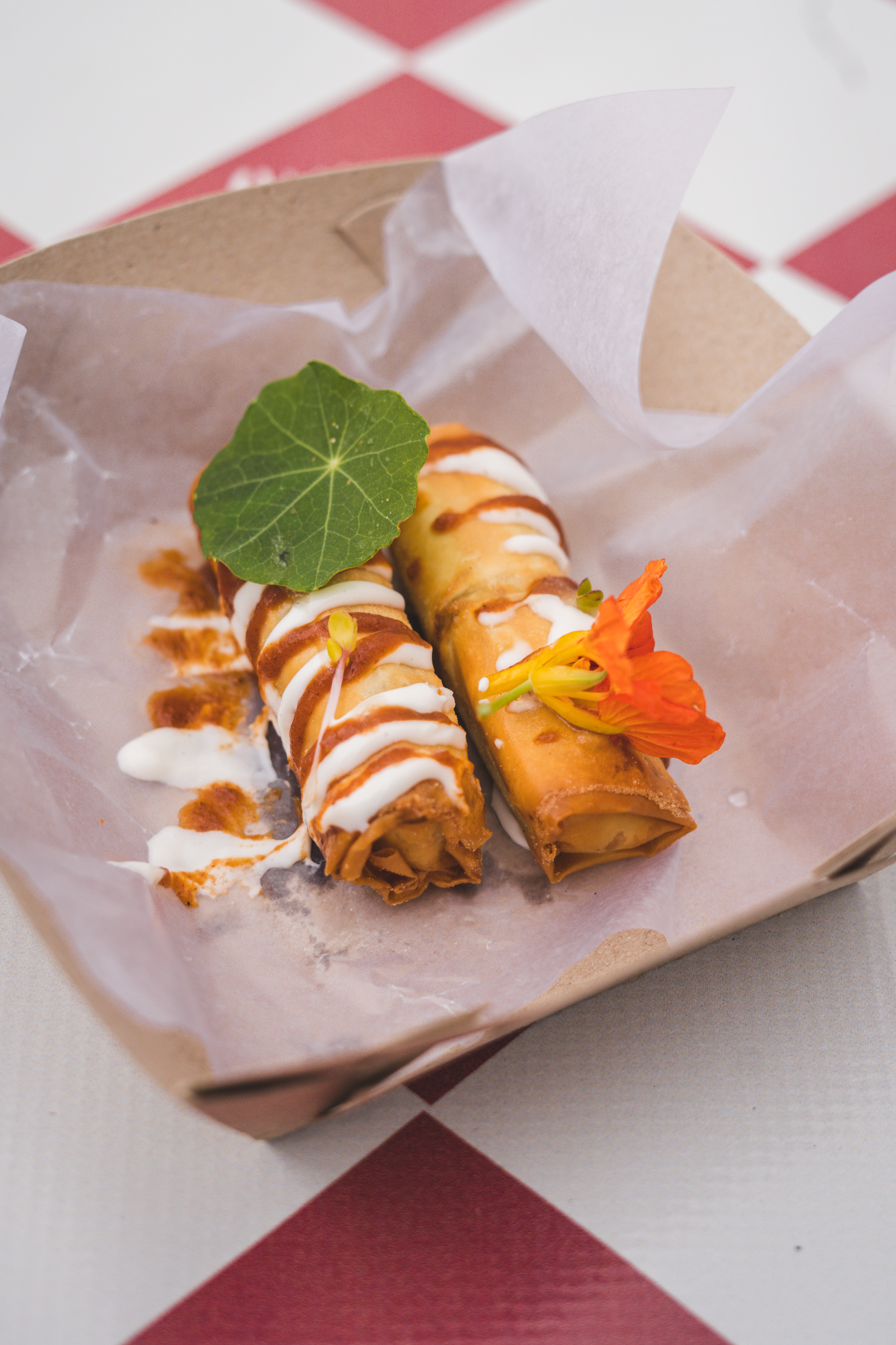 Acercarse al stand y que te reciban con tonada mendocina entusiasma. Si encima te cuentan que todos sus platos son de producción local, entusiasma más todavía. Y si probás un roll y sentís la ternura del conejo confitado con una presencia tan equilibrada en boca, te urge la necesidad de comer uno más, ¡y por suerte vienen en pares!