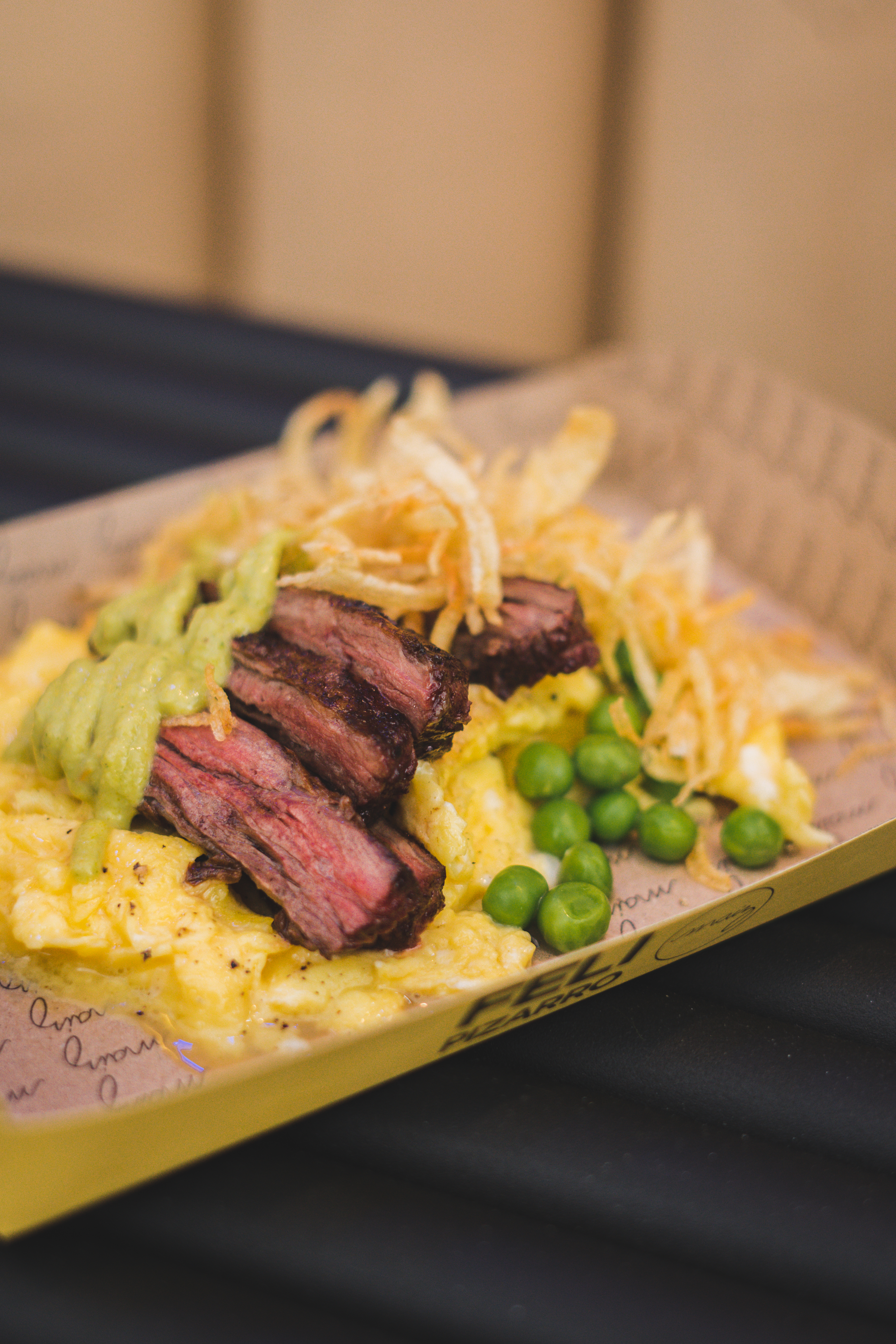 Sabores que traen recuerdos pero con el twist de una mano que sabe: Feli Pizarro sigue siendo fiel a su esencia en esta edición con una entraña a punto hecha a la parrilla, acompañada de un revuelto gramajo soft – los huevos batidos babé parecen un tierno puré – y un final de salsa Huancaina verde medio picantón. En su puesto recreó a Maíz, con suculentas en cajones y un packagging de lo más estético.