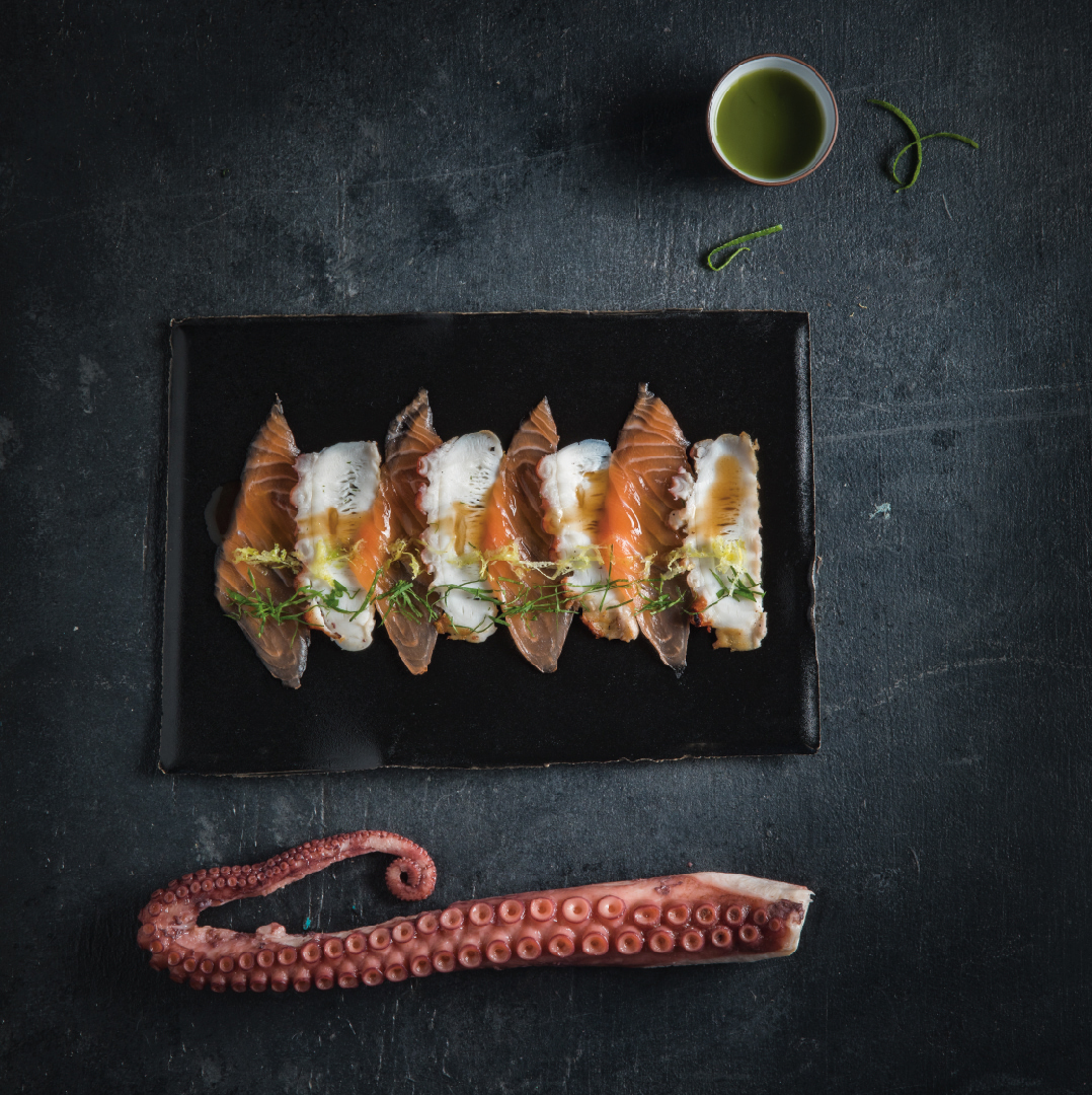 De la mano de Miguel Ángel Torres, Chef Ejecutivo de cocina, y Juan Espagnac, Chef Ejecutivo de sushi, se podrán degustar de sus platos característicos, como los mariscos al fuego salteados en mantequilla japonesa, langostinos flambeados con salsa de puerro y crema de curry, como también el tiradito de salmón y pulpo parrillado con ralladura de limón, cilantro, en salsa ostión, entre otros.