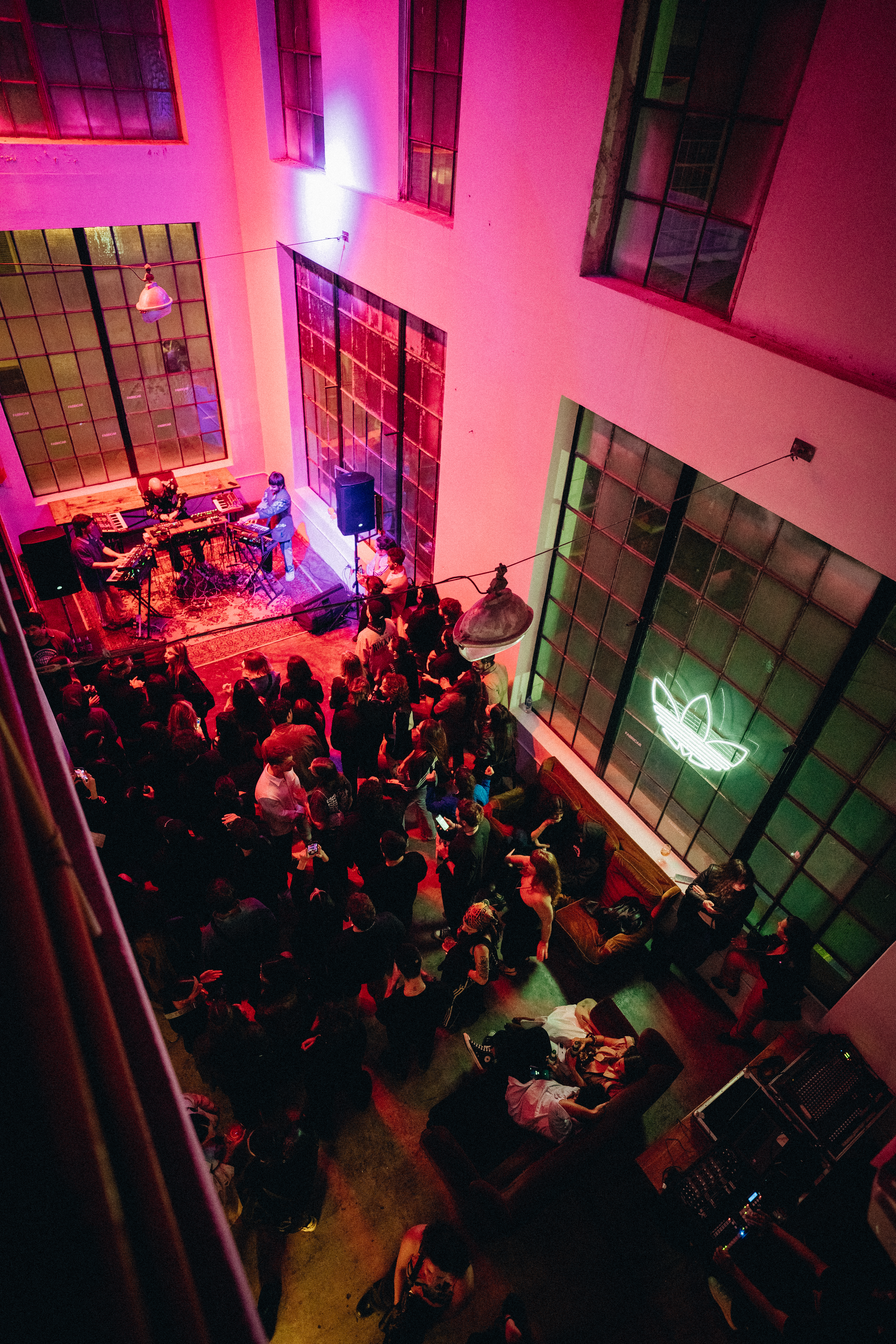 Con entrada en mano, después de las 20 hs. – cuando ya no están sus depósitos ni logística en funcionamiento – se ingresa a esta fábrica. Después de un breve recorrido por calles internas se llega al espacio iluminado donde suelen convivir: un dj, una iluminada cocina a la vista con algún pop up y una muestra de arte.
