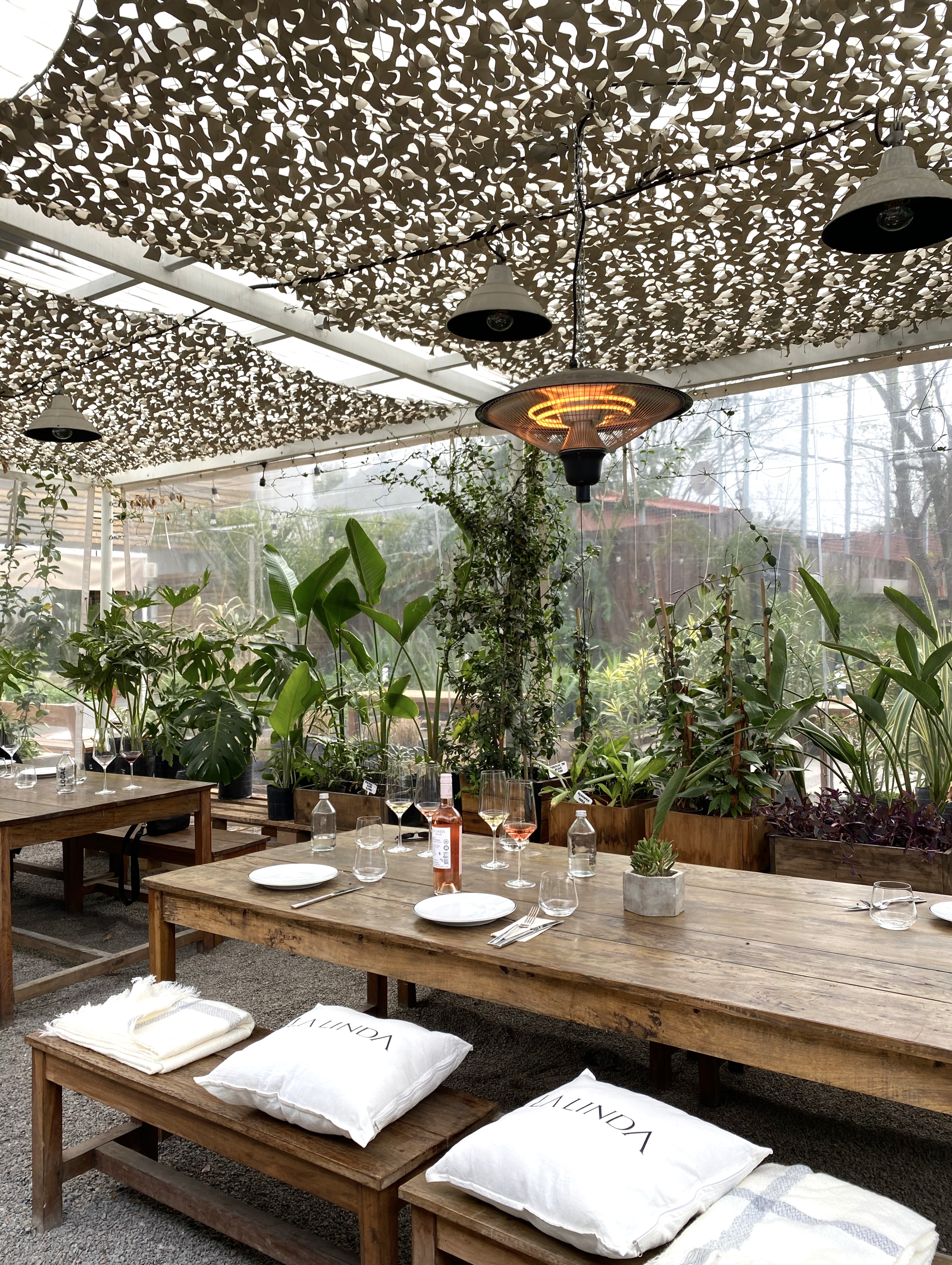 El primer proyecto gastronómico de Feli Pizarro y su marido es una unión de sus dos esencias y pasiones: vivero, cava, fuegos, quesos y charcutería. El espacio amplio que comparten con el tercer local de La Valiente, en Nordelta, tiene dos momentos muy distintos. De día, un refugio entre verdes, cielos celestes y fibras naturales. De noche, una experiencia más íntima, con una iluminación escondida entre los jardines que cautiva y marida ideal con el protagonismo del fuego.