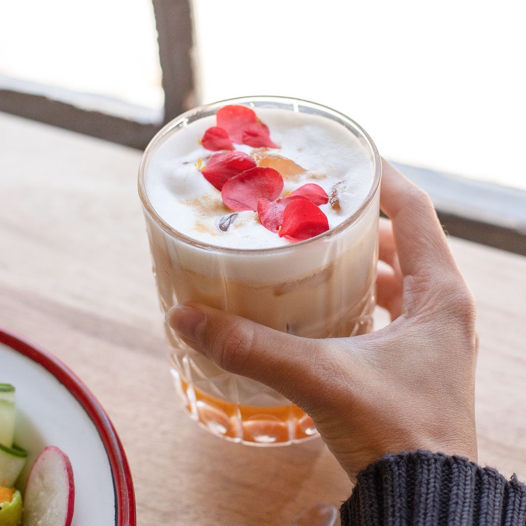 «Flor de Latte», una de las propuestas florales de cafés fríos en Blu.