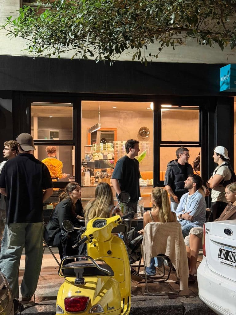 Esa búsqueda no es casual. El proyecto nace de una observación muy atenta del barrio y de su ritmo cotidiano –pero sobre todo de la vida que se arma alrededor de la plaza Carlos Pellegrini: el movimiento de la gente, las pausas, las rutinas que se repiten–, lo que se traduce en un espacio pensado para integrarse con naturalidad a la dinámica de la zona. También aparecen los árboles, la luz filtrándose entre las hojas y las sombras en movimiento como parte de ese registro sensible que termina de definir el lugar.