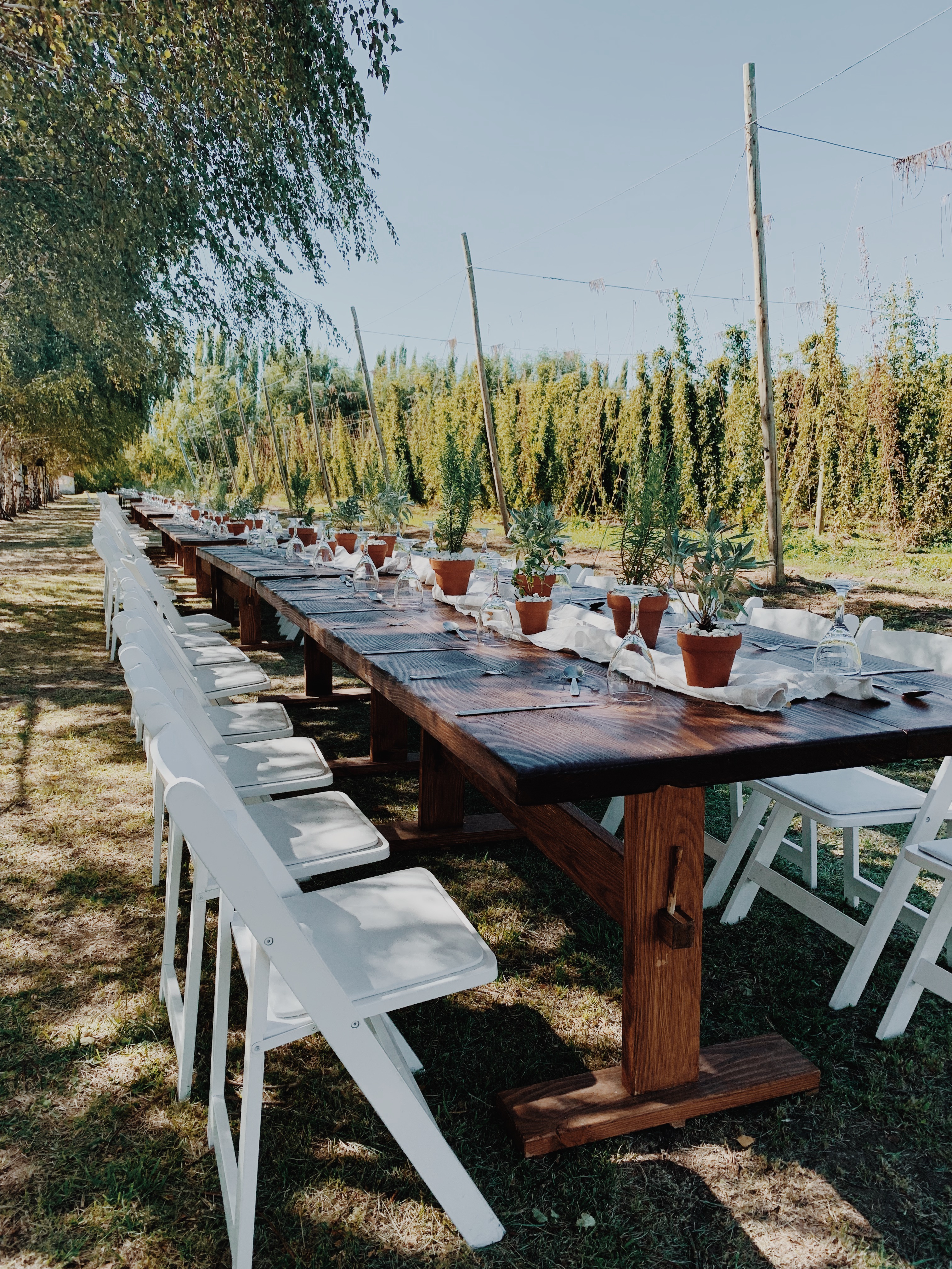 Mesa lista para un banquete durante la cosecha de lúpulo en la provincia de Río Negro