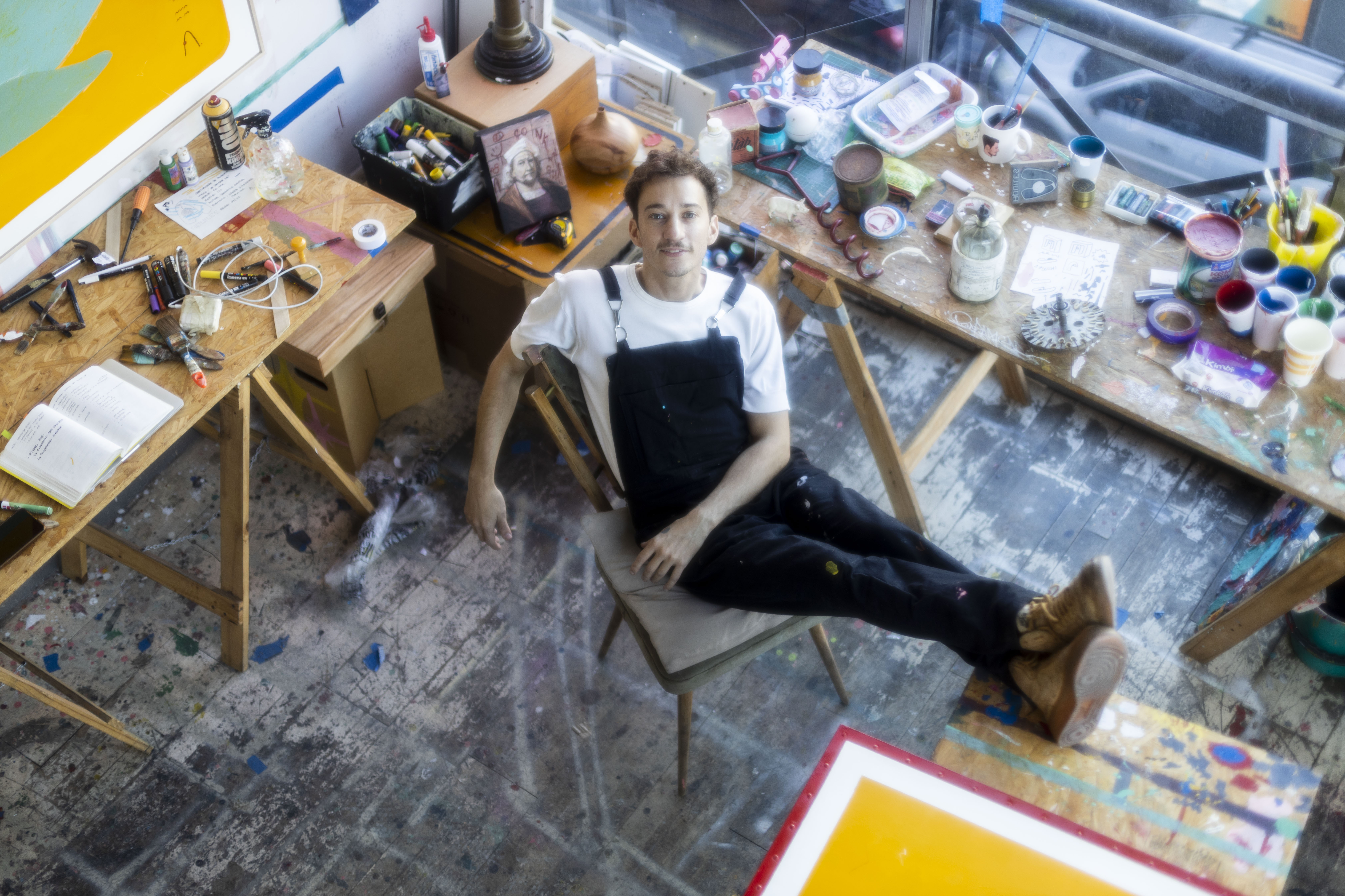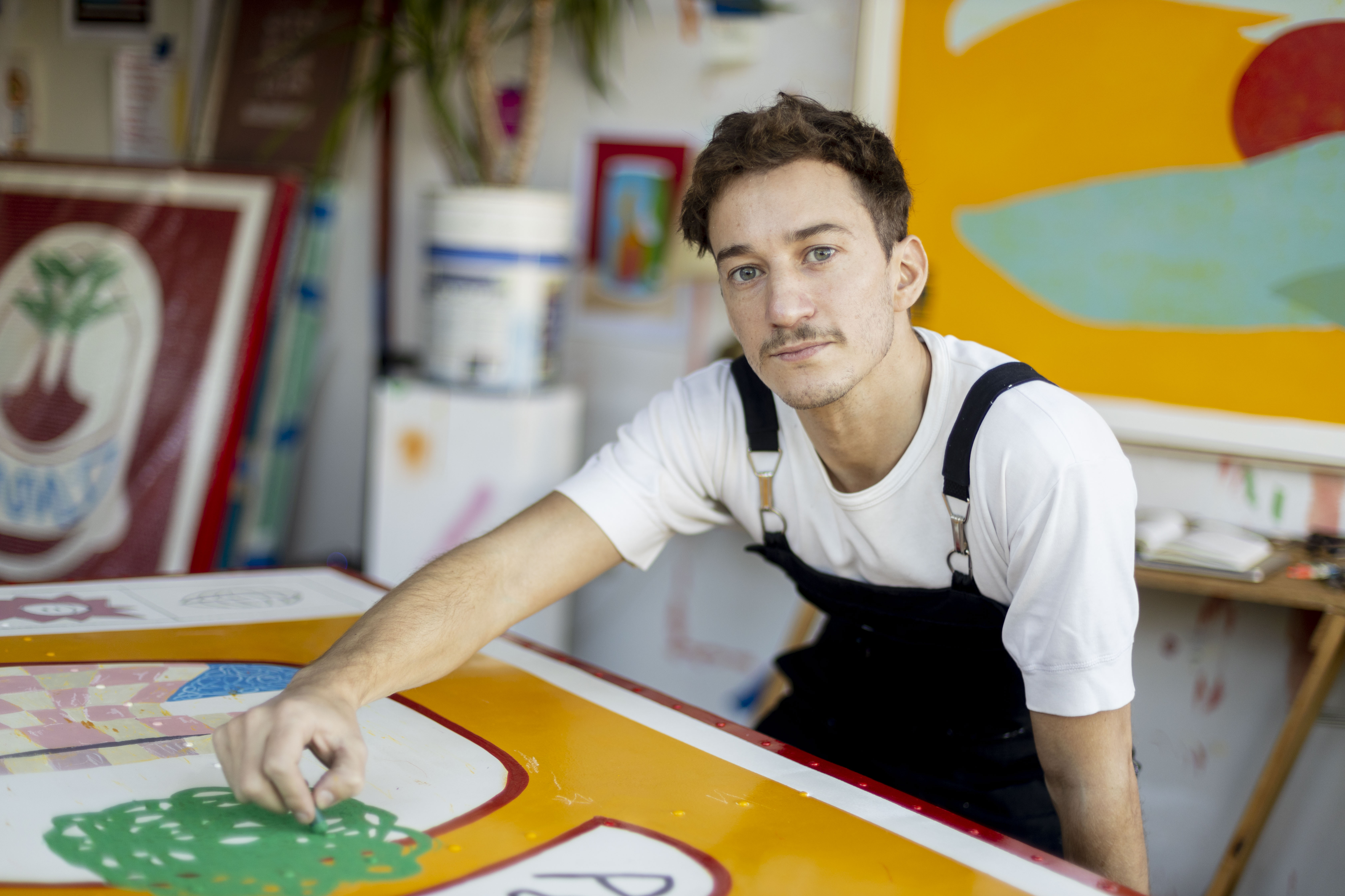Con inspiración del diseño gráfico, de la publicidad y con obras optimistas llenas de colores, es uno de los artistas jóvenes más interesantes de su generación/Valentin Gatica (Aquiles) recibió a Maleva en su hogar en las alturas y nos contó qué es lo que le gusta de vivir allí, porqué se considera un «recolector», cuál es el amuleto de la suerte que lleva a cada muestra y porqué le gusta la vista industrial y europea de su departamento/Además: «soy bastante prolijo con mi desorden ordenado».