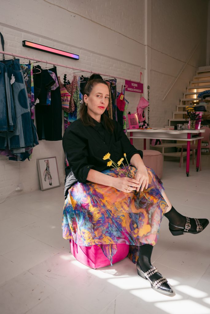Vanesa Krongold fue precursora en Chacarita. De 2012 a 2018 tuvo un showroom en Av. Forest y, una vez que la virtualidad se adueñó de todo decidió cerrarlo, viajar con su ropa a distintos destinos y tener una marca online itinerante. Seis años después, la diseñadora desembarcó – hace nada más que dos semanas –, en la misma avenida otra vez. Las cosas cambiaron, hay más movimiento, pero su amor por el barrio y su alegría por volver están intactas. Quienes también deberían alegrarse son sus seguidores porque el estallido de diseño y color tangible es digno de ser apreciado.