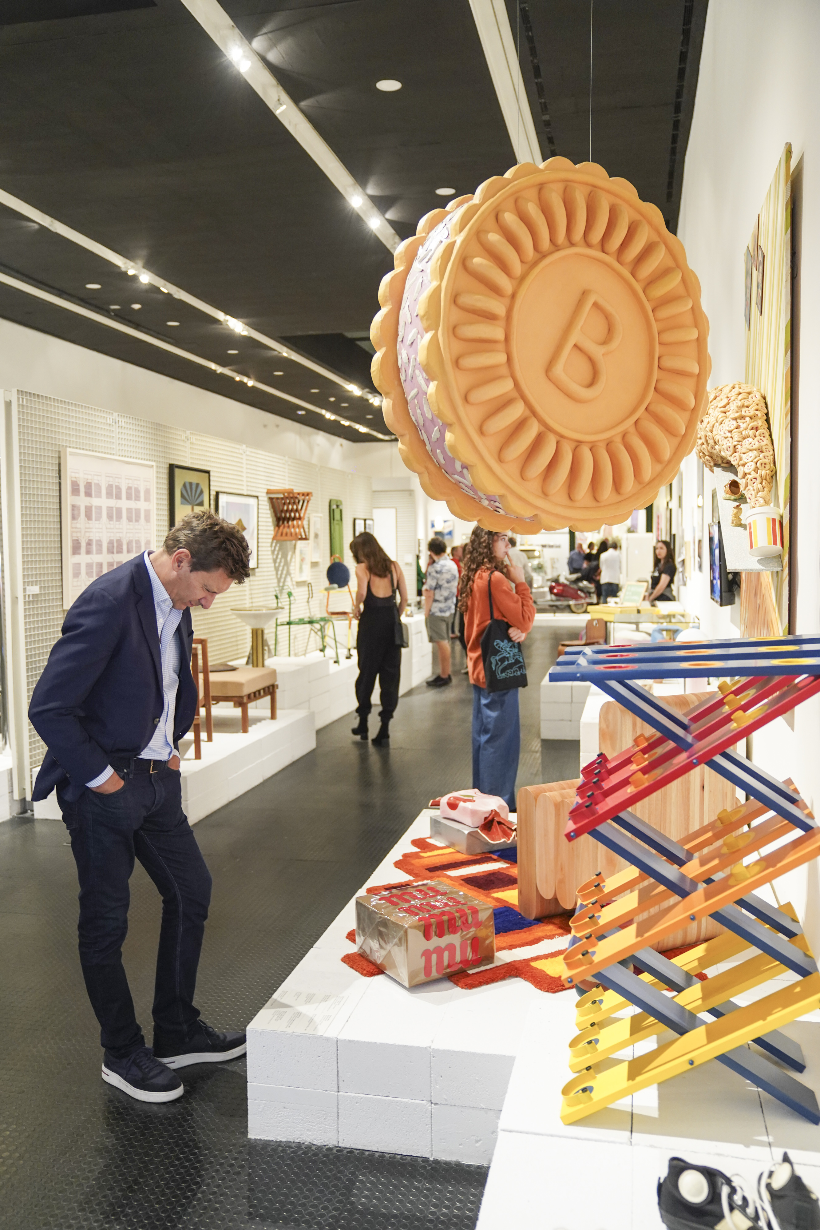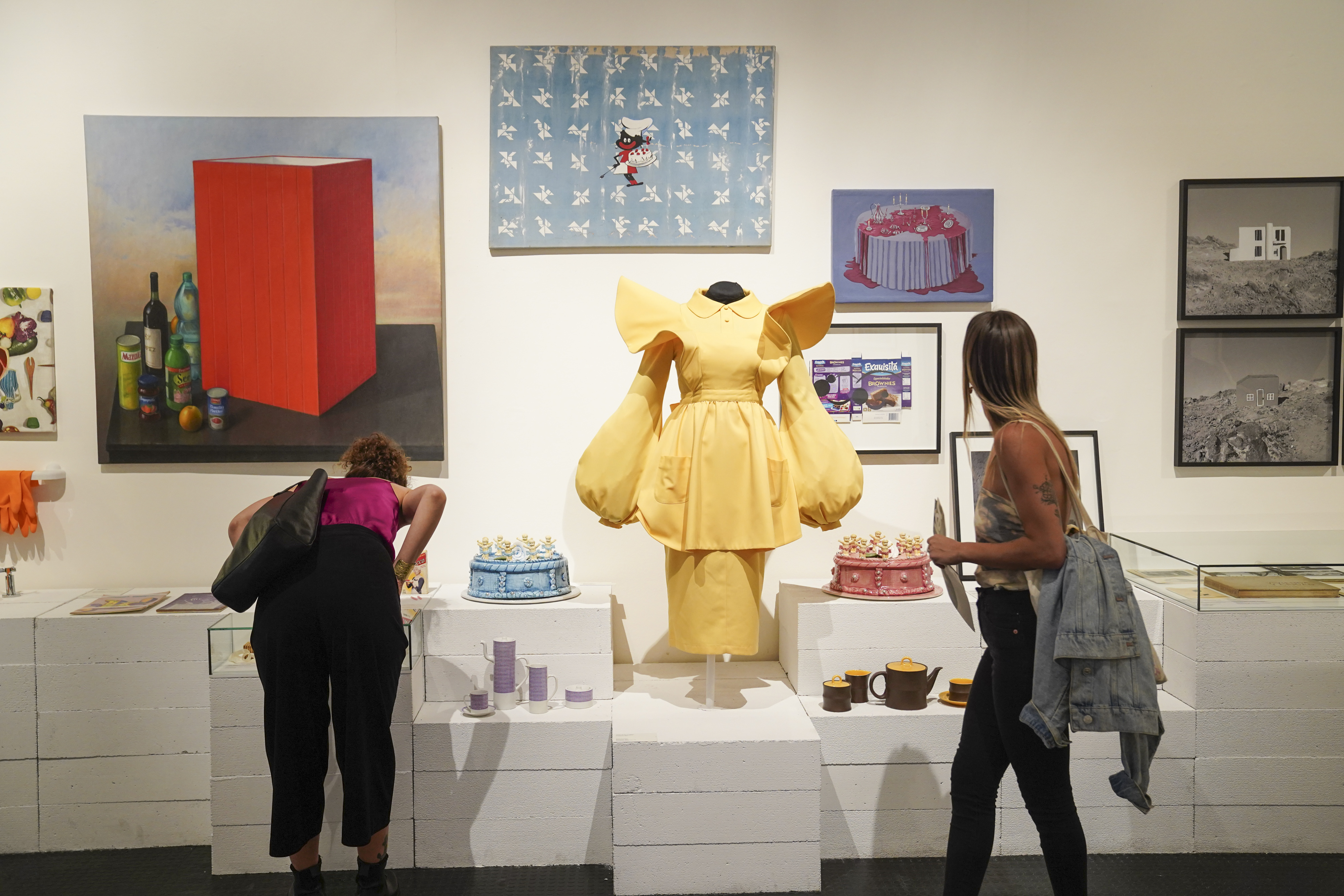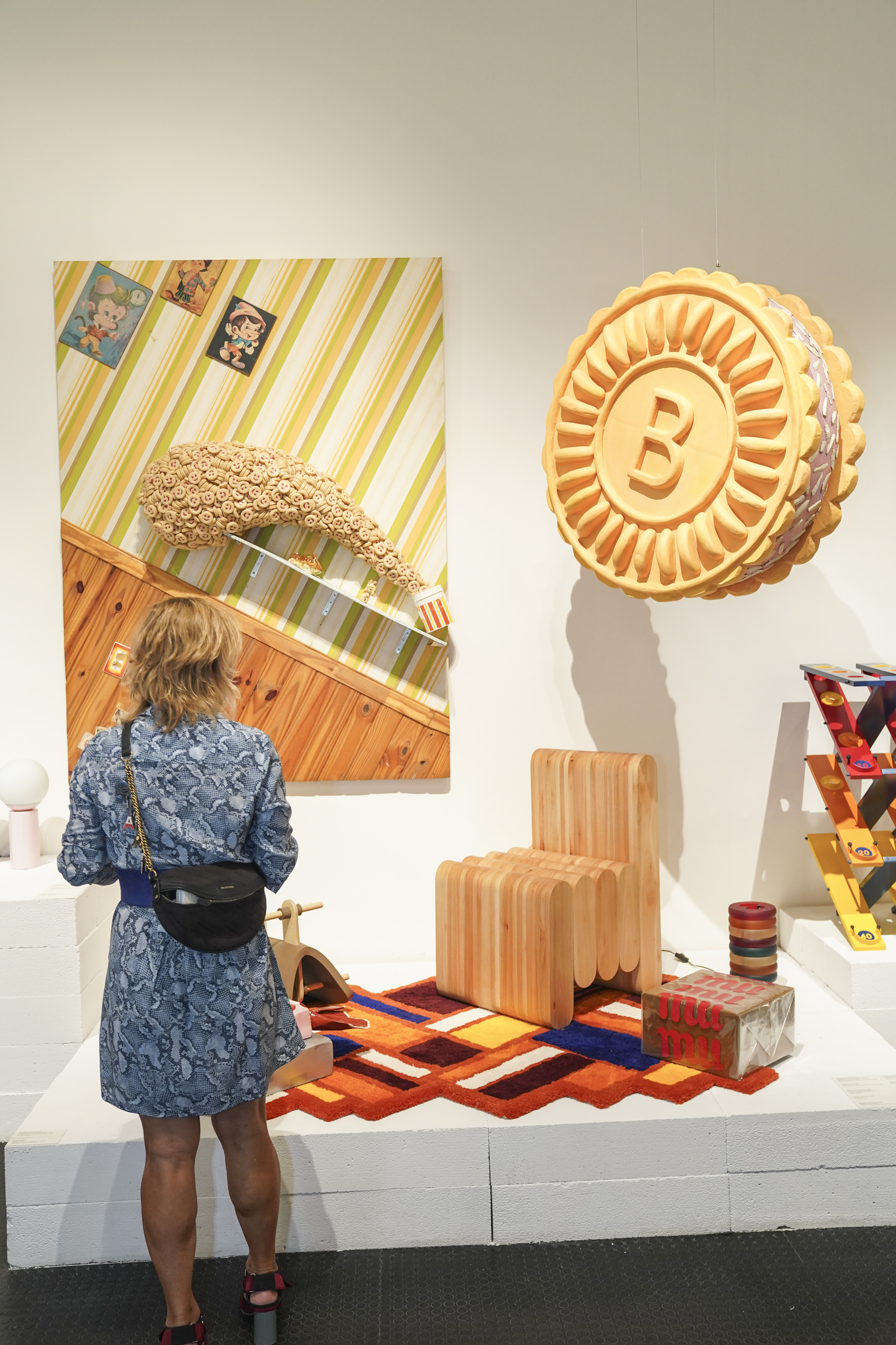 En la zona que titularon “Recreo”, la instalación artística de las golosinas se roba las miradas. Y es que cuelga del techo una gran Merengada, obra de Martín de Paola y, junto a ella versiones en escala de los caramelos más conocidos: los Mumu, los masticables de Arcor, el Pico Dulce, y un cuadro en volumen que hace oda a las Sonrisas. Y otra idea viene a la mente: los kioscos y su comida “chatarra”, tan icónica en infancias pasadas, se están cuestionando lentamente, en una actualidad con mucha mayor conciencia de la alimentación. ¿Desaparecerán en algún momento esos espacios que hipnotizan a los niños como un Disney de azúcar y colores? ¿O simplemente mutará lo que vemos exhibido hacia alternativas más saludables y naturales? Las infancias de antes y las infancias de hoy, una temática que se puede desarrollar hasta el infinito y que invita a pensarnos en profundidad como sociedad.