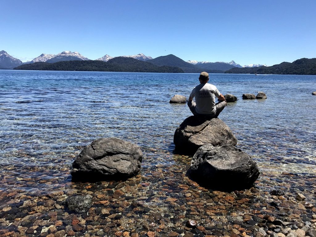 Nos metimos en un bosque que bordeaba una de las costas del Nahuel Huapi con Juan. Él es necochense, pero vive desde hace 17 años en el Sur, donde creó Anfitriones, un emprendimiento enfocado en darle experiencias únicas a los turistas, y en darles un acompañamiento desde que llegan hasta que se van. Por eso el concepto de anfitrión: te reciben, te acompañan y te despiden, y organizan todos los momentos de tu viaje. Mientras caminábamos y empezábamos a tomar contacto con las diferentes especies de árboles autóctonos -arrayanes, coihues-, nos contó un poco cómo descubrió esta práctica milenaria. Un empresario le pidió que encontrara una actividad interesante para los huéspedes de su hotel. Y se puso a investigar, hasta que dio con el baño de bosque.Se contactó con la única escuela que lo enseña en Japón, y ellos lo contactaron con el Forest Therapy Institute, un instituto que capacita en esta práctica en Europa, Latinoamérica y Estados Unidos. En 2019 viajó a España para estudiar la parte teórica, y terminó la parte práctica en Necochea y Villa La Angostura; así se recibió de guía de baños de bosque. Él y Rocío Ferraro (guía en Cariló), son los únicos argentinos que lo realizan.