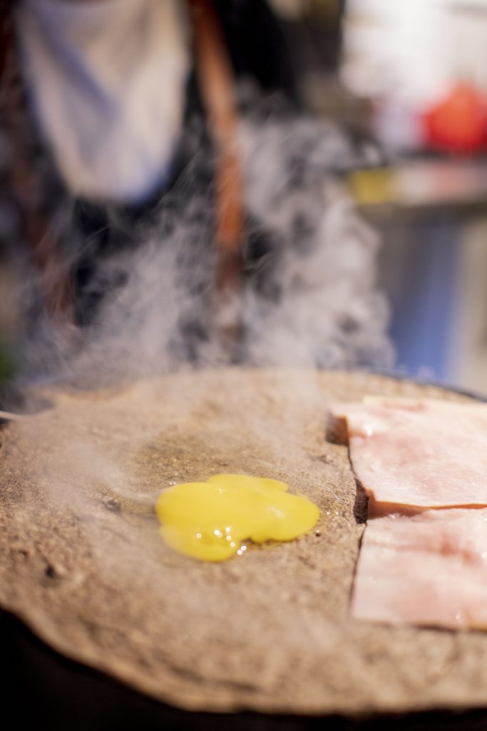 Además de la propuesta de panadería, pastelería francesa y cafetería de Morgan Chauvel, y de los clásicos como sus croissant y su pain au chocolat, agregó a su carta, exclusivo para el mercado, los Galettes, que son como los crepes, pero salados, y elaborados a base de harina de sarraceno. El más pedido es el de jamón, queso y huevo. Pero también tienen de bondiola, de pierna de cerdo, salmón, capresse y vegano. Ver su preparación es casi relajante.