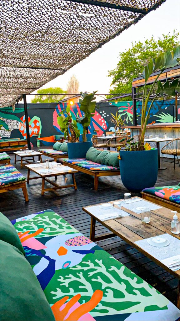 Se puede vivir una experiencia diferente en el deck aterrazado de 350 m2 orientado al Río de la Plata, el bar ubicado en la terraza del restaurante, o en su coqueto salón. Ofrecen dos propuestas: atención con servicio en mesas y take away plus en su jardín trasero con estacionamiento propio. La carta gastronómica cuenta con una variedad de preparaciones inspiradas en diferentes cocinas del mundo, realizadas con recetas del chef Diego Álvarez. En el selvático deck, de miércoles a sábados se instala una divertida barra de sushi omakase, a cargo del sushiman Sebastián Serrano. En japonés, omakase significa “confiar” o “ponerse en manos del chef”. Para acompañar, cuentan con una carta con tragos de autor preparados por Lucho García, su cocktail designer. Además, ofrecen una completa carta de vinos, cerveza, gaseosas y jugos naturales.