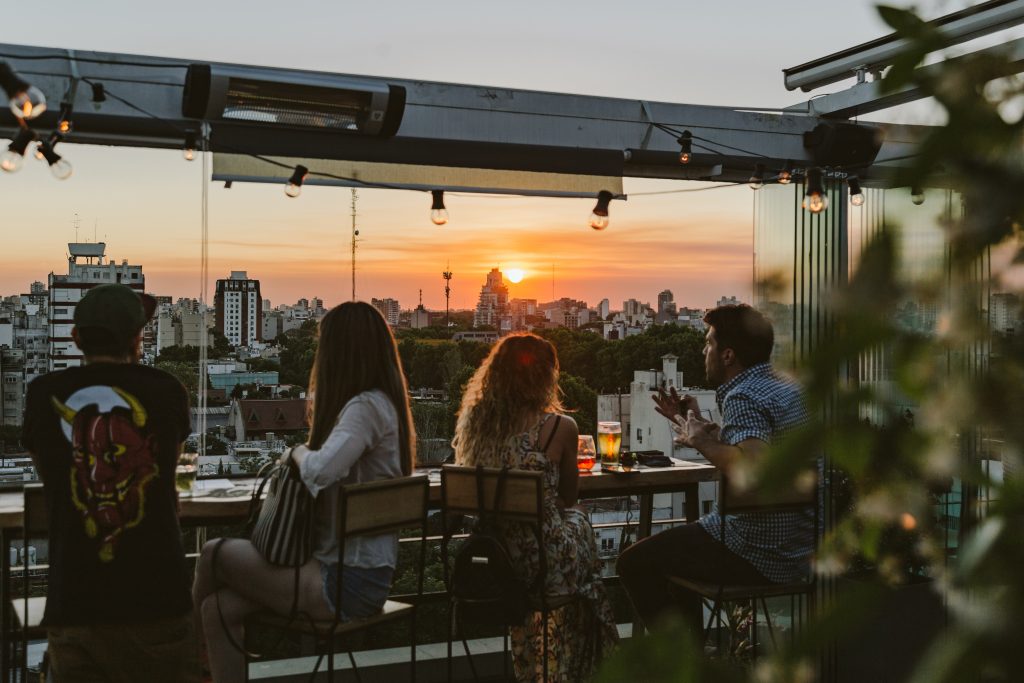 La terraza al aire libre se destaca por su ambiente relajado. El after office ya está colmando las tardes y noches de la ciudad porteña. Un programa ideal para disfrutar de la deslumbrante vista al atardecer de Buenos Aires, con tres pisos para cenar y vivir una experiencia diferente.