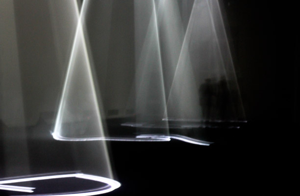 Si uso un lenguaje cinematográfico, yo diría que cada una es como una película distinta, y lo que se proyecta es una luz blanca que va dibujando el suelo, muy lentamente, pero también hay algo más en el espacio: una neblina. ¿Y para qué está? Para que la luz la atraviese y se formen esculturas con formas tridimensionales a las que uno puede dirigirse, en las que uno puede caminar.