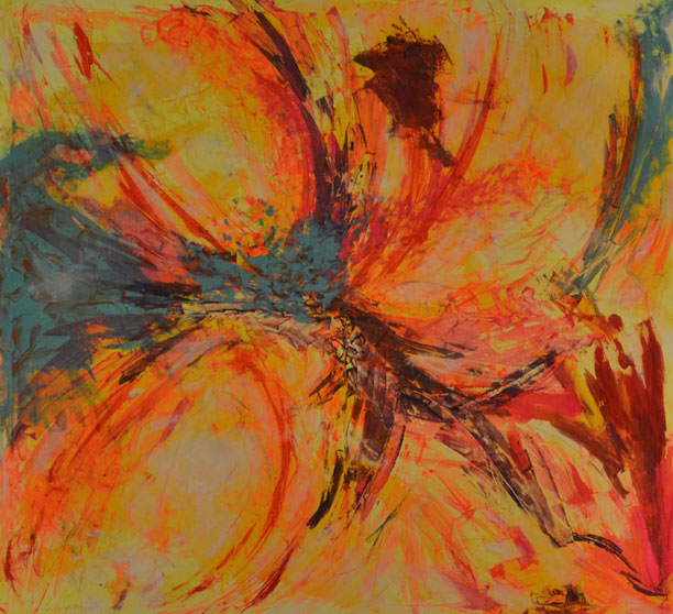 Coni Rodriguez (26), nuestra artista de la semana, desafía siempre al blanco del lienzo sin miedo y haciendo un (implícito) pacto artístico. Como fondo tenemos un acrílico del 2012 llamado Inspiración. Sus últimos trabajos reflejan un estallido de colores flúor que afectan los sentidos y sugieren sensaciones aromáticas. Antes mantuvo una paleta en la que se destacaban el negro, el blanco y el rojo. Su orientación plástica y profesional se inició en el taller de Marcela Davidson, en los que exploró distintas técnicas y fijó su estilo en una plena libertad expresionista abstracta. Se expandió en esa etapa su deseo de pintar en enormes lienzos sobre los que trabaja con las dos manos, con los dedos, con espátulas y con pinceles. Todos los instrumentos participan de su obra. Todos hacen a su sinfonía expresionista. Durante la adolescencia fue autodidacta aunque su dedicación definitiva como artista plástica empieza a darse en 2008. Su obra participó en distintas exposiciones grupales (en la Recova, Naranja Verde, entre otros lugares) y en breve – está dedicada a su programación y realización – presentará su primera muestra individual.