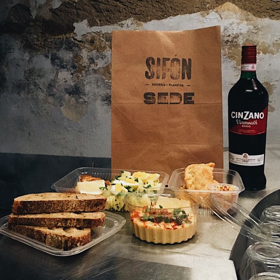 Sifón, la vermutería que la rompió en los últimos tiempos, en donde todos eligen tomarse un vermút con soda, te lleva esa situación a tu casa. Desde empanadas de osobuco y buñuelos de acelga hasta cócteles embotellados como el irish punch, listos para “sodear”.