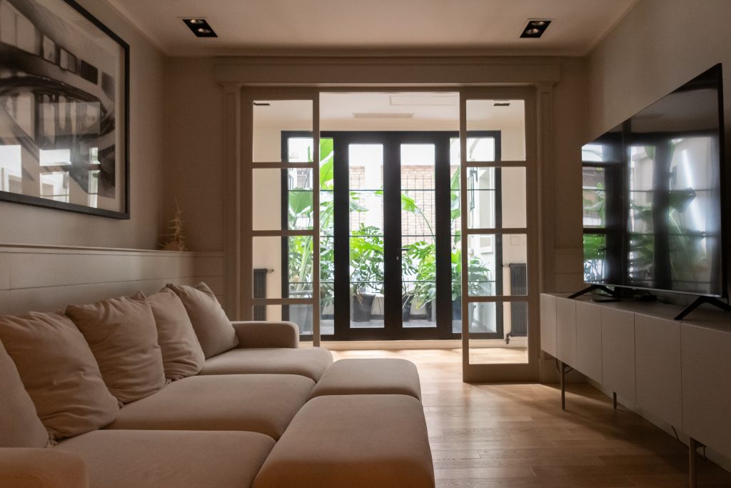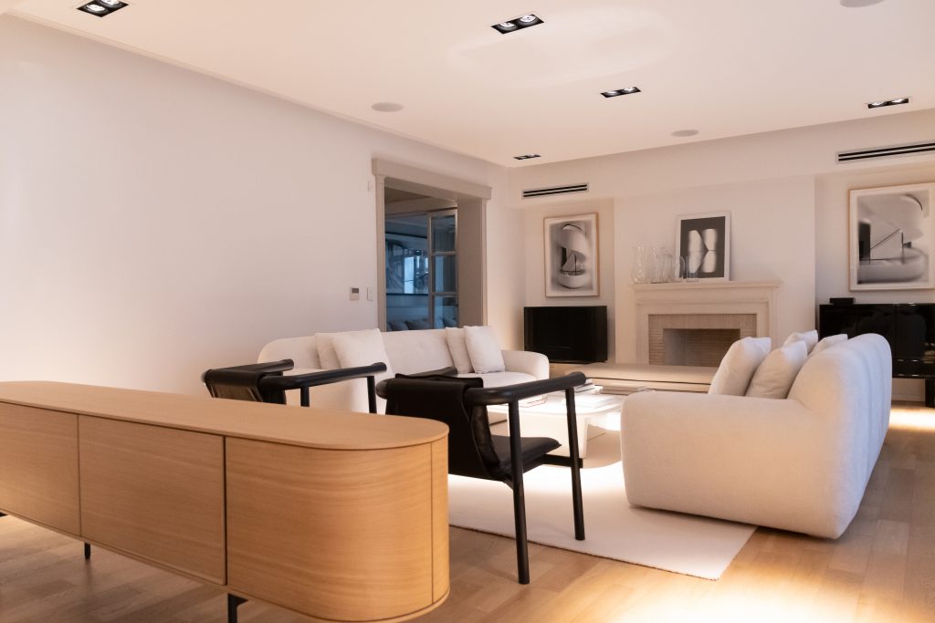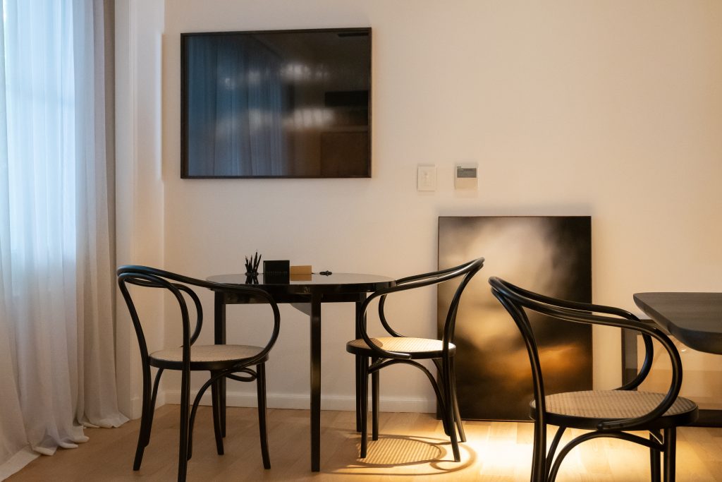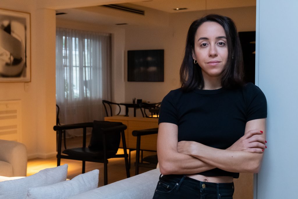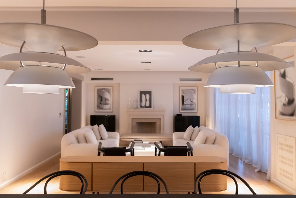 Vestida en un total black – desde los zapatos, pantalones y remera, hasta la cartera y bolsa que carga -, Michelle Parisier baja de su auto vintage del 81 y se acerca a la puerta del último departamento que diseñó. Una sensación de elegancia, en colores neutros, conquista el espacio.