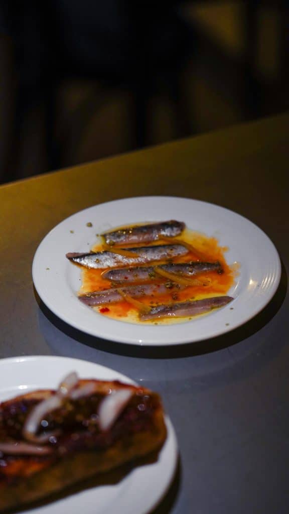 La carta, en papel —como no podía ser de otra forma—, cuenta con una sección de pequeñas raciones, o más bien “bocaditos”, en alusión a su título, que transportan a distintos escenarios nacionales: salame de Traslasierra; anchoas de Mar del Plata; aceitunas al horno de leña marinadas en aceite de oliva producido en Río Negro; nduja de Córdoba con higos blancos. A esto se suma una serie de pizza de estilo porteño, pero con combinaciones pujantes, como la de anchoas con ensalada a un lado, o la de bechamel, espinaca y ricota.