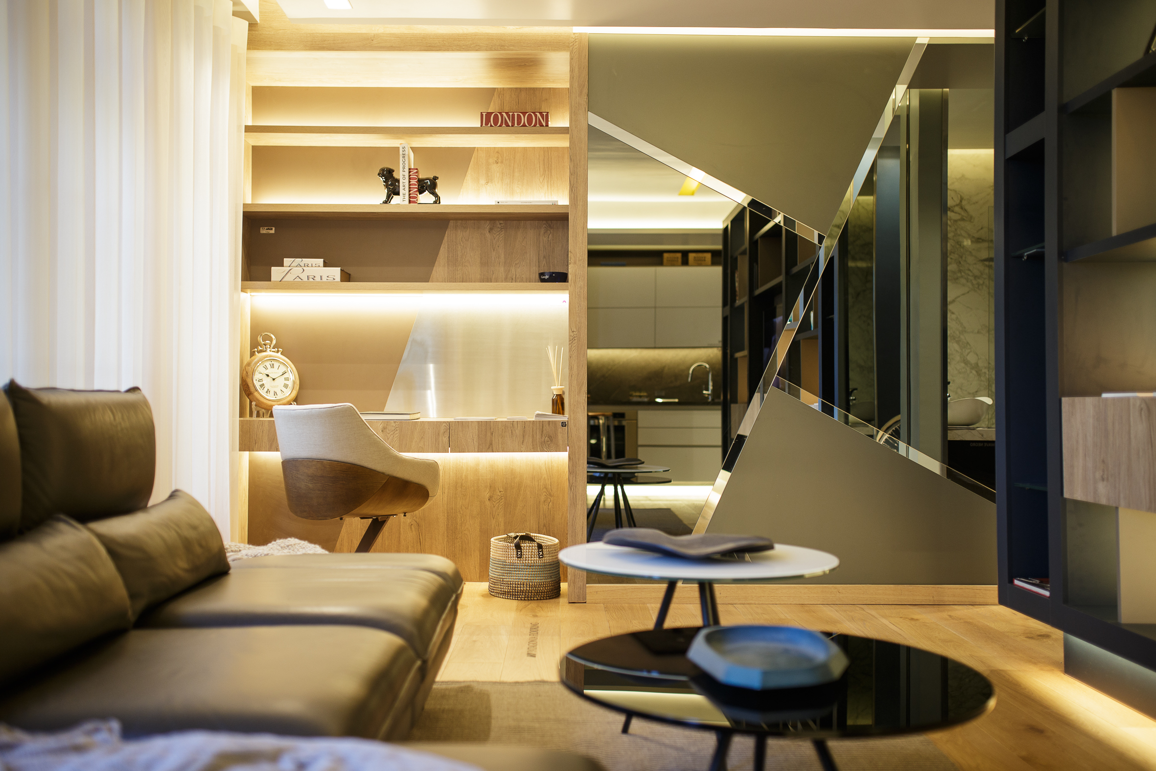 Micaela Rabinovich es una apasionada de su creación y -junto a su socia, Andrea González – desarrollaron un propuesta multifuncional que es kitchenette, sala de estar, escritorio y comedor a la vez. “Es una residencia donde cada departamento tiene un baño y una habitación, y lo otro queda en los lugares comunes. Quisimos generar un concepto que tenga distintos planos y sea versátil”, explica.