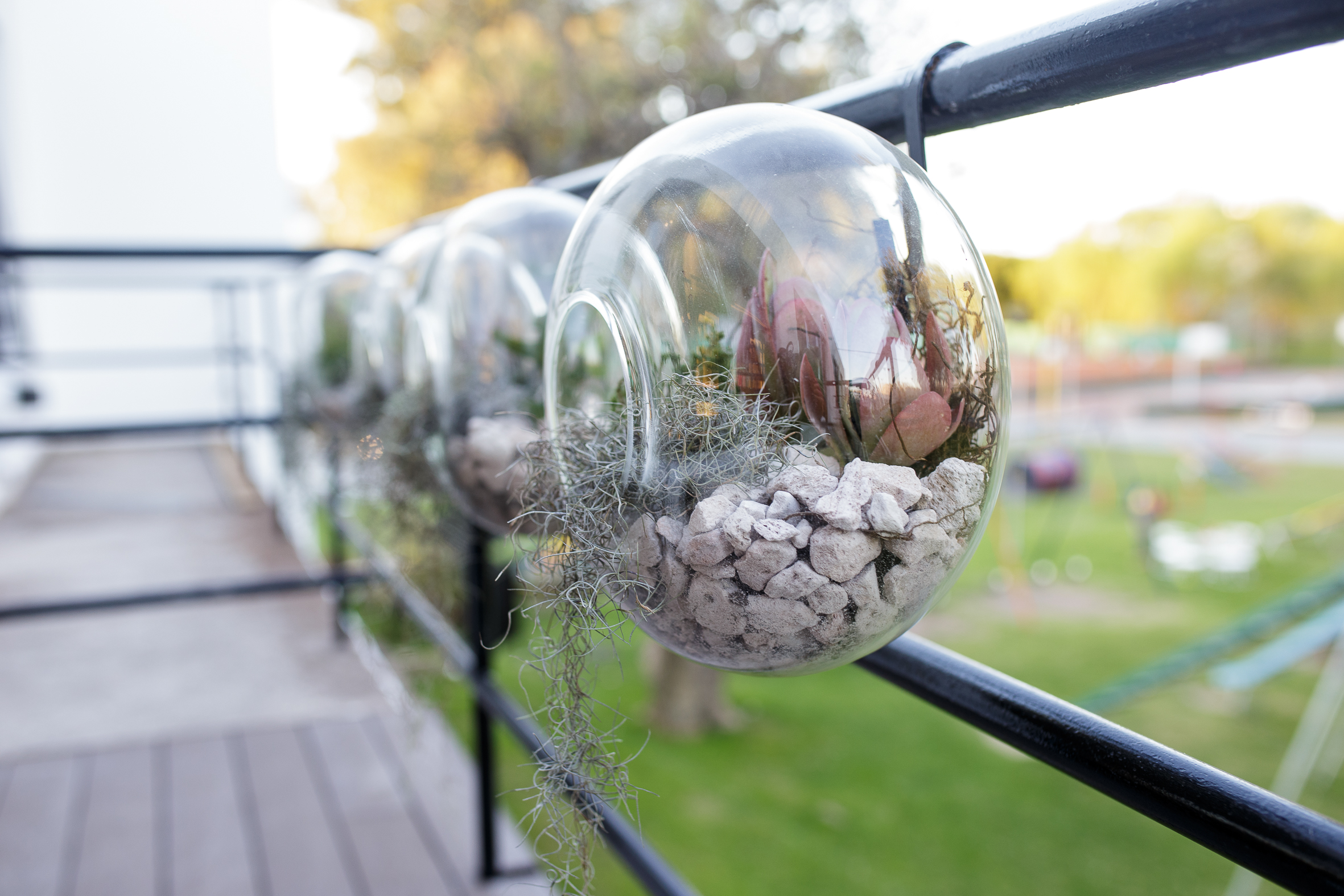 La terraza está rodeada por cientos de plantas que esconden entre sus hojas hermosas lucecitas que simulan ser románticas luciérnagas. “Cuando llegaron las plantas no sabía qué hacer, cómo subirlas, mi pesadilla se había vuelto realidad. Por suerte tenemos una obra acá cerquita y los muchachos me ayudaron. Armamos esto en un fin de semana abajo de la lluvia”, relata entre risas.