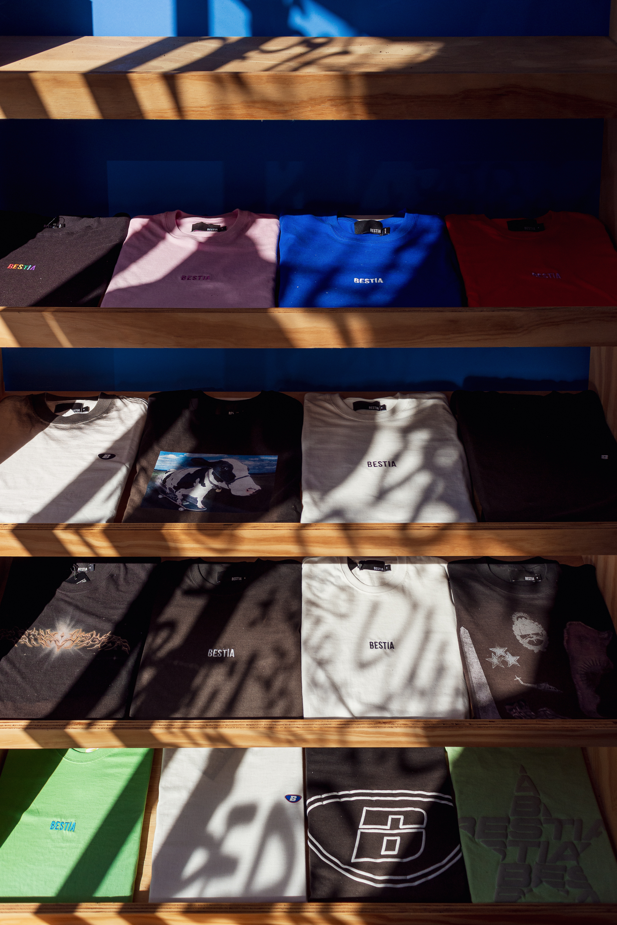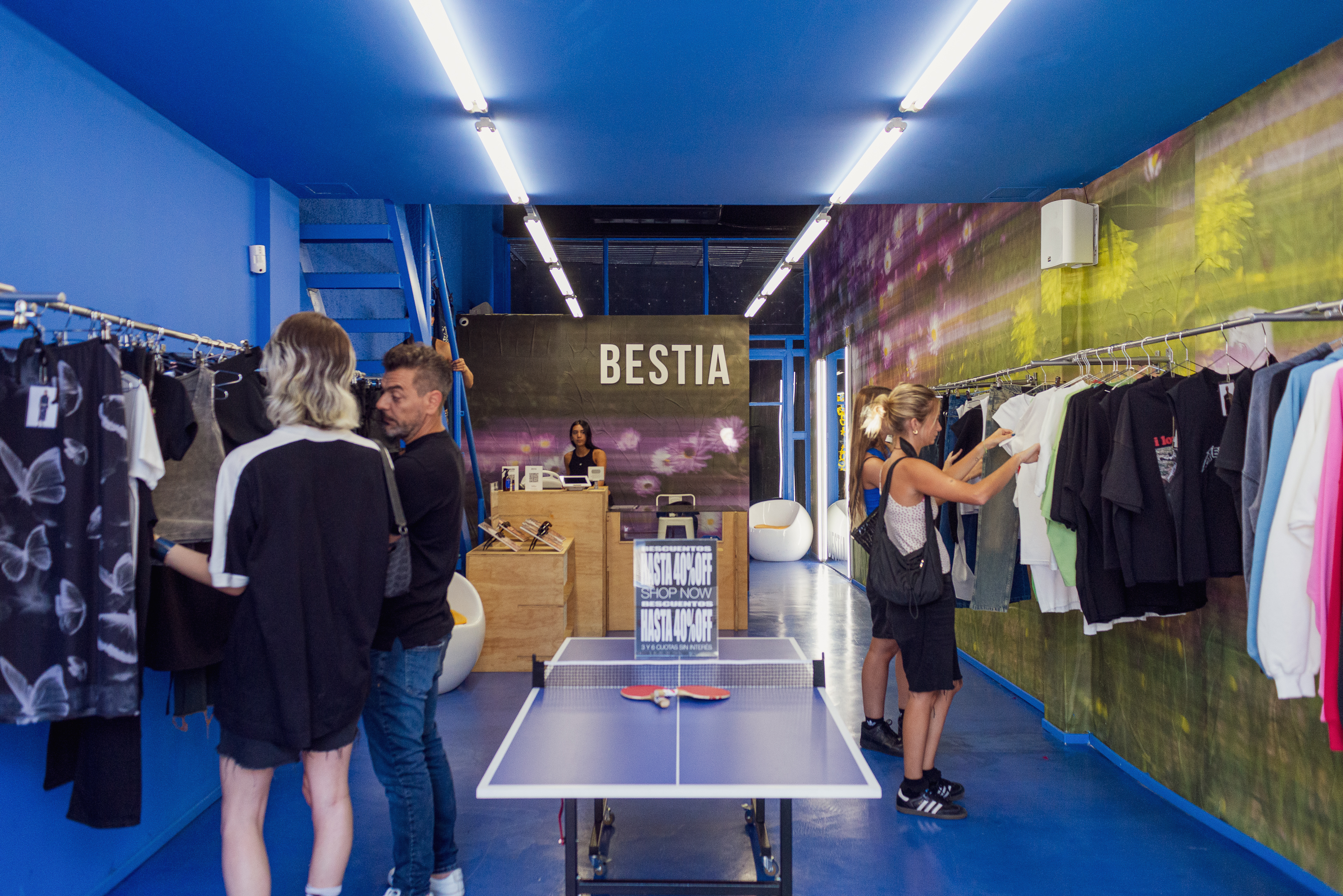 “En Palermo nos dimos cuenta de que, con menos esfuerzo económico y de fuerza de venta, podíamos duplicar o quintuplicar lo que vendíamos», sostiene Cata. La presencia de Bestia en la zona pisó fuerte y su local fue por todo: «Decidimos llevarlo al extremo. El local es completamente azul, hay una mesa de ping-pong en lugar de una mesa expositora e intervenimos la vidriera con artistas. Queremos que venir a Bestia sea una experiencia lúdica, que invite a sacarse fotos y a quedarse un rato«, expresa Cata.