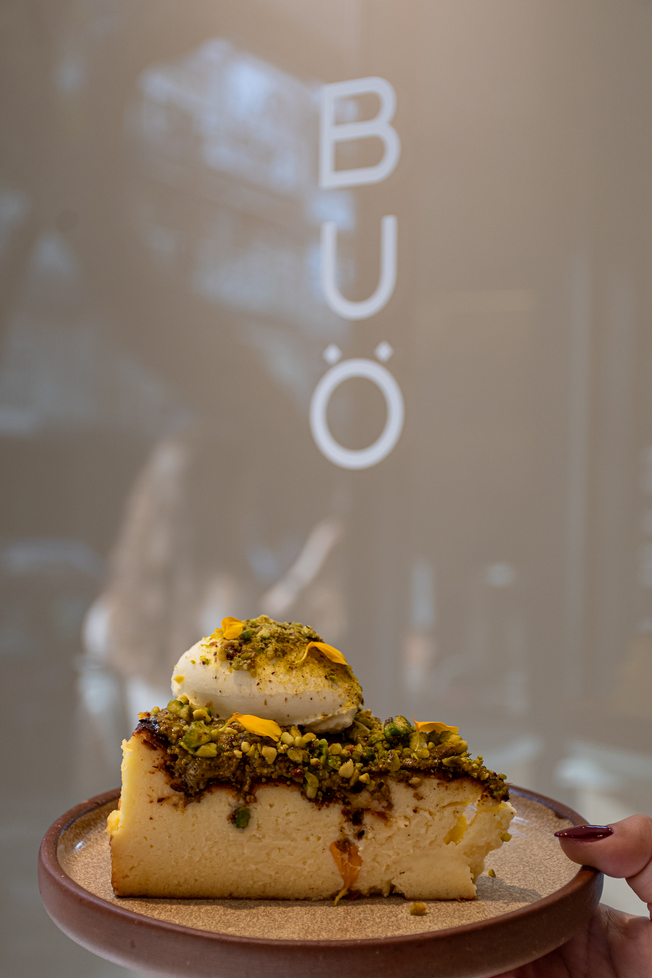 Ubicado en una esquina con un gran ventanal en la ochava, desde marzo BUÖ invita a los transeúntes a asomarse y deleitarse con su interior y su oferta gastronómica. Desayuno, almuerzo, merienda y mucho pistacho: tarta vasca de pistacho, palmerita XXL con choco y pistacho, macarons de pistacho, alfajor de pistacho.